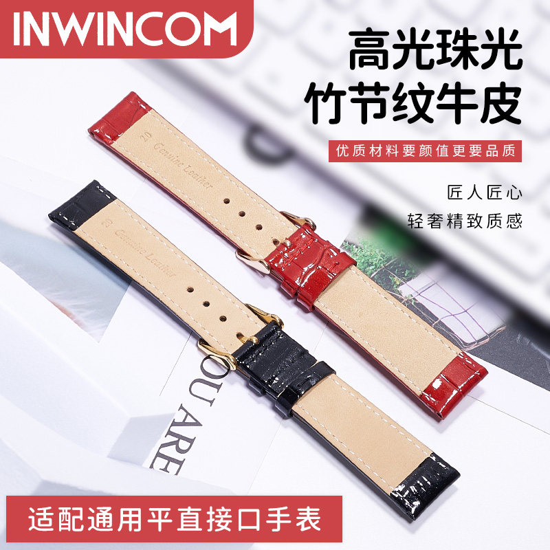 📚 表带真皮女红色亮光通用格雅卡西欧飞亚达浪琴罗西尼手表配件表链