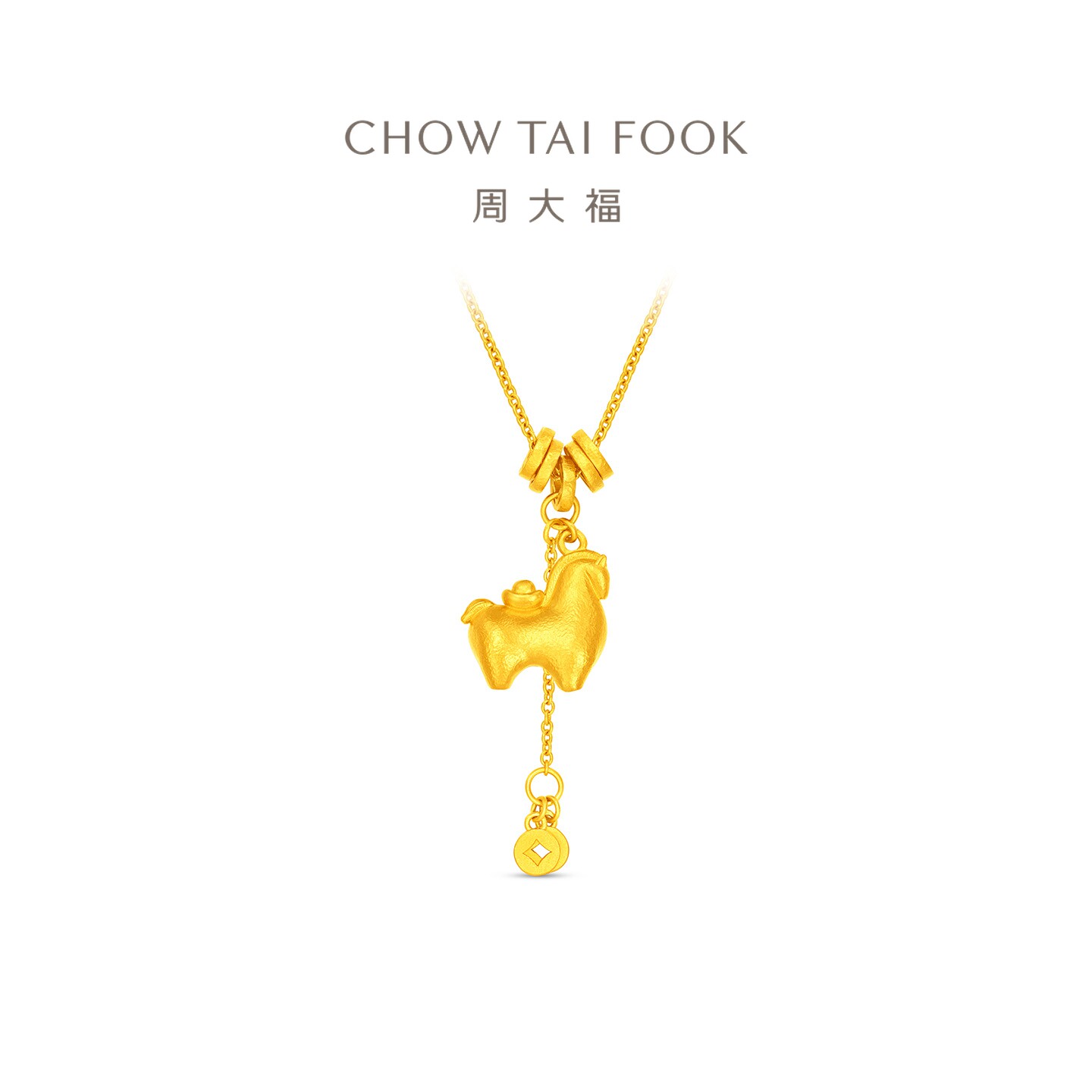 📚 周大福马年生肖锤纹钱币唐马足金黄金项链计价女款EOF1839送礼