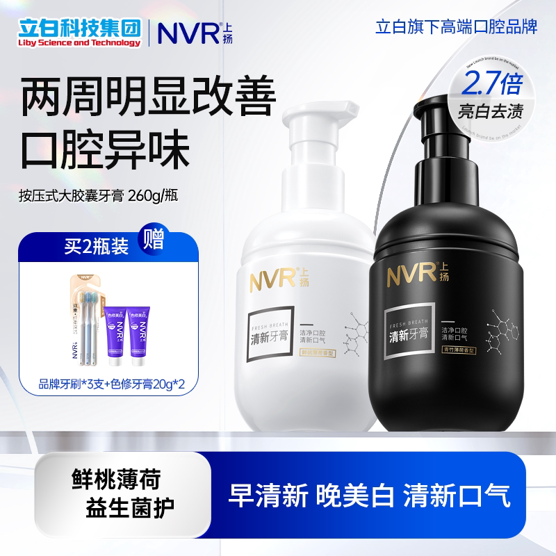 📚 NVR上扬益生菌牙膏美白去黄去口臭清新口气男士女按压式官方正品