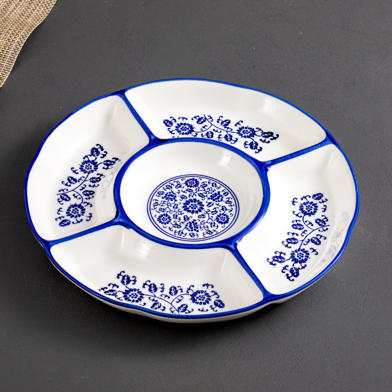 💥惊艳!拼盘分格青花瓷五格盘,卤水熟食凉菜餐盘,诱人水果干果碟子,券后价仅13✨
