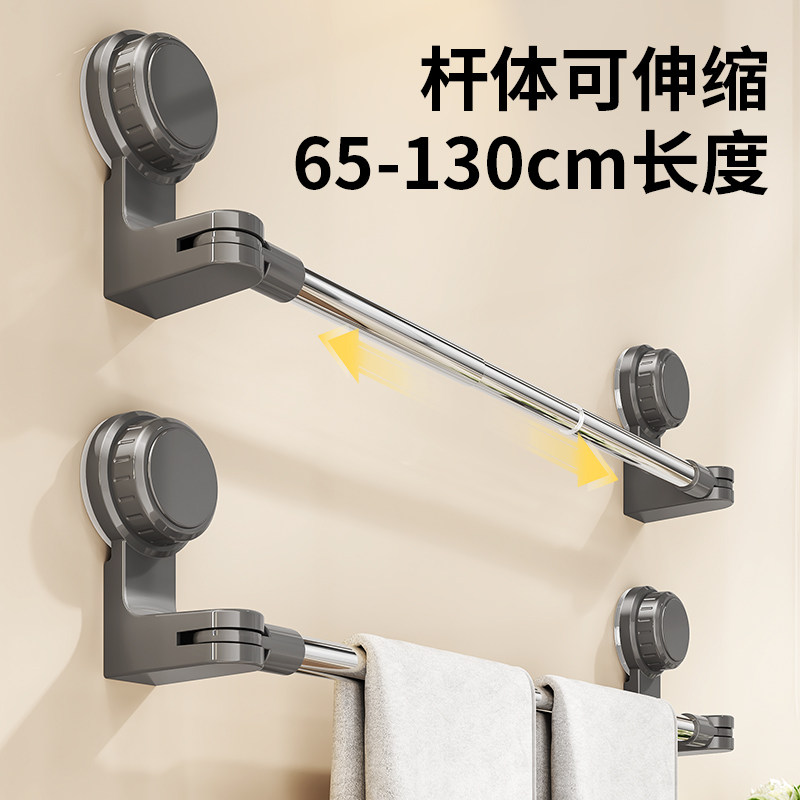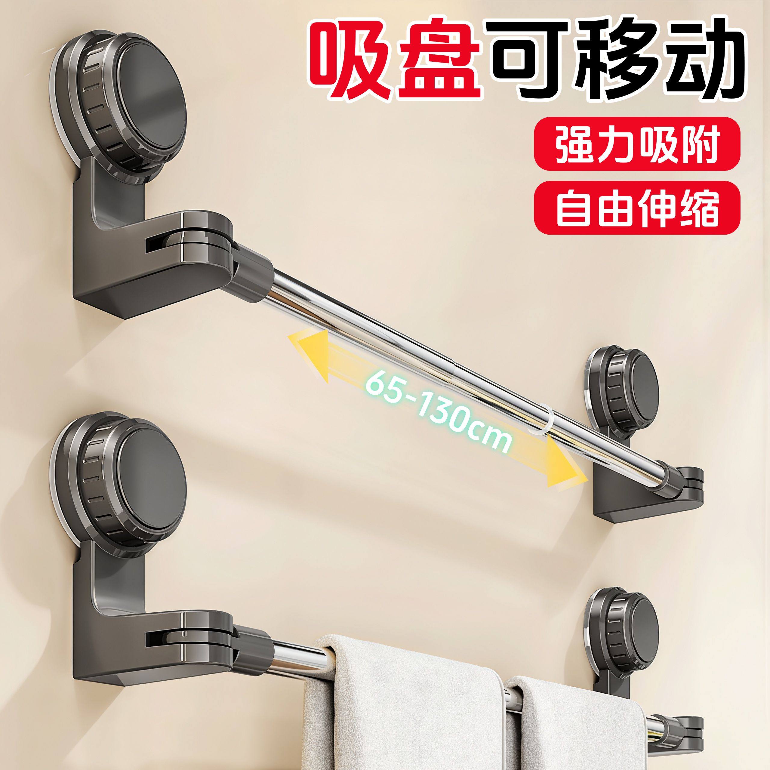 📚 吸盘毛巾架卫生间免打孔浴室伸缩毛巾杆置物架洗手间浴巾收纳挂架