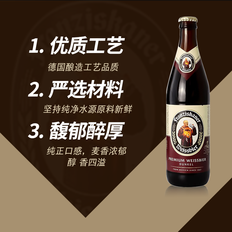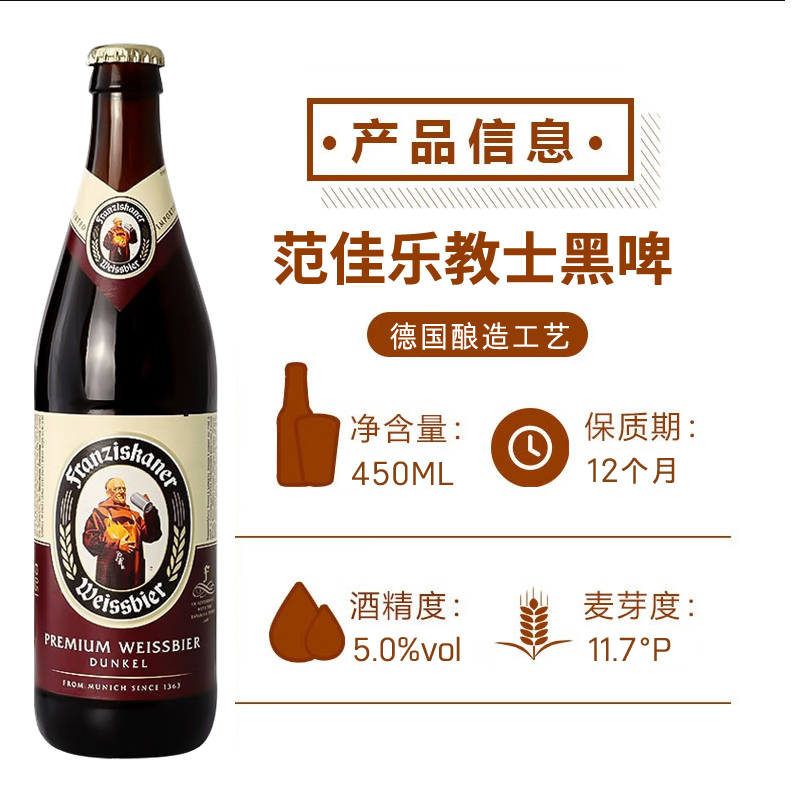 📚 国产教士黑啤酒瓶装整箱450ml*12/瓶进口德国范佳乐 Franziskaner