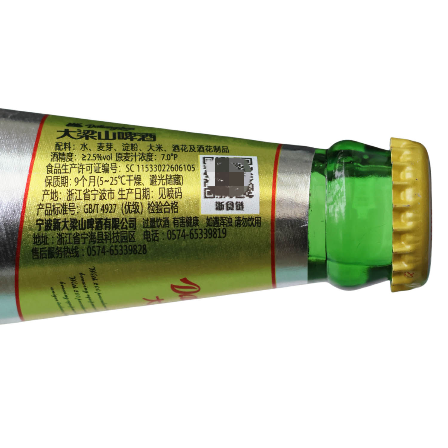 📚 宁波大梁山啤酒7度淡啤黄啤450ml*1瓶玻璃装休闲宴请聚会酒