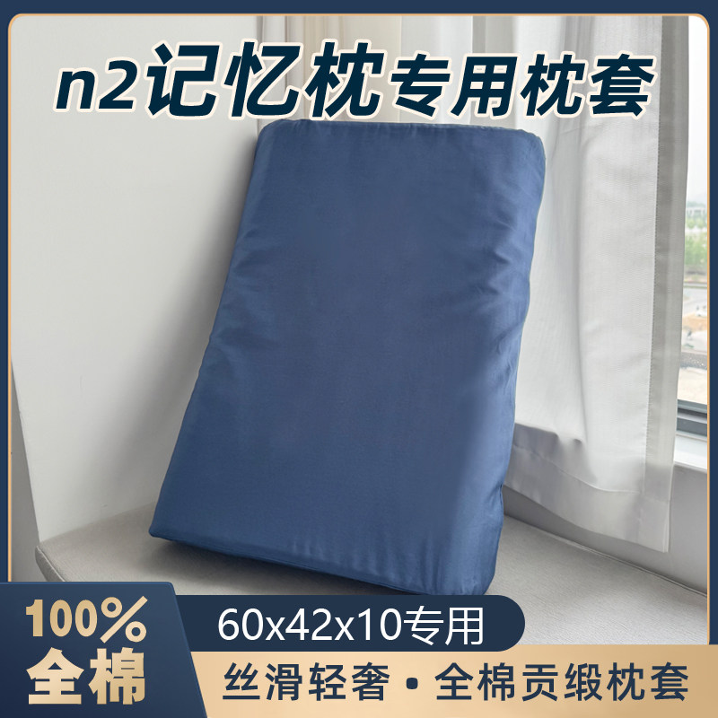 📚 纯棉蓝色n2盒子枕套单个60x42记忆枕专用小蓝枕枕头套100全棉一对