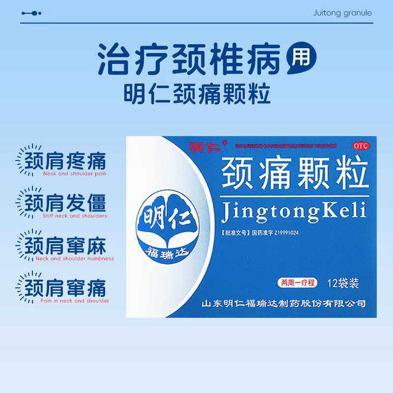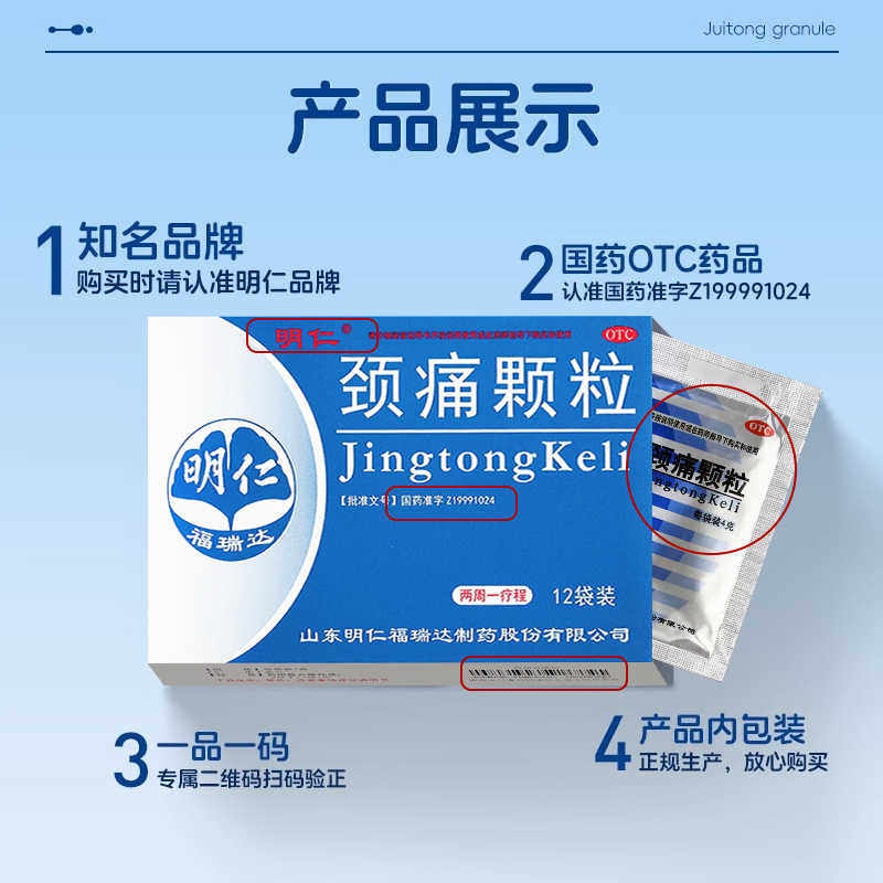 📚 明仁颈痛颗粒12袋颈椎病活血化瘀止痛药非颈痛灵胶囊贴片非颈复康