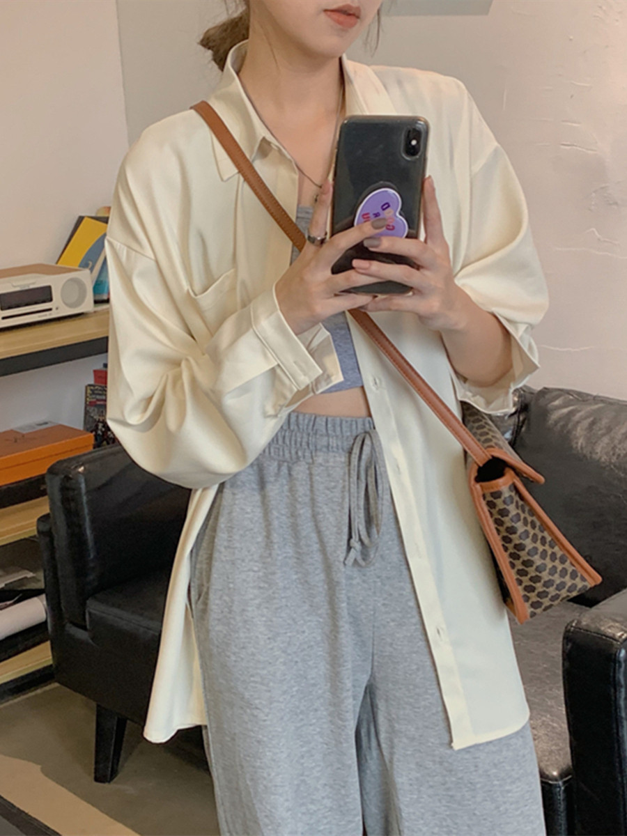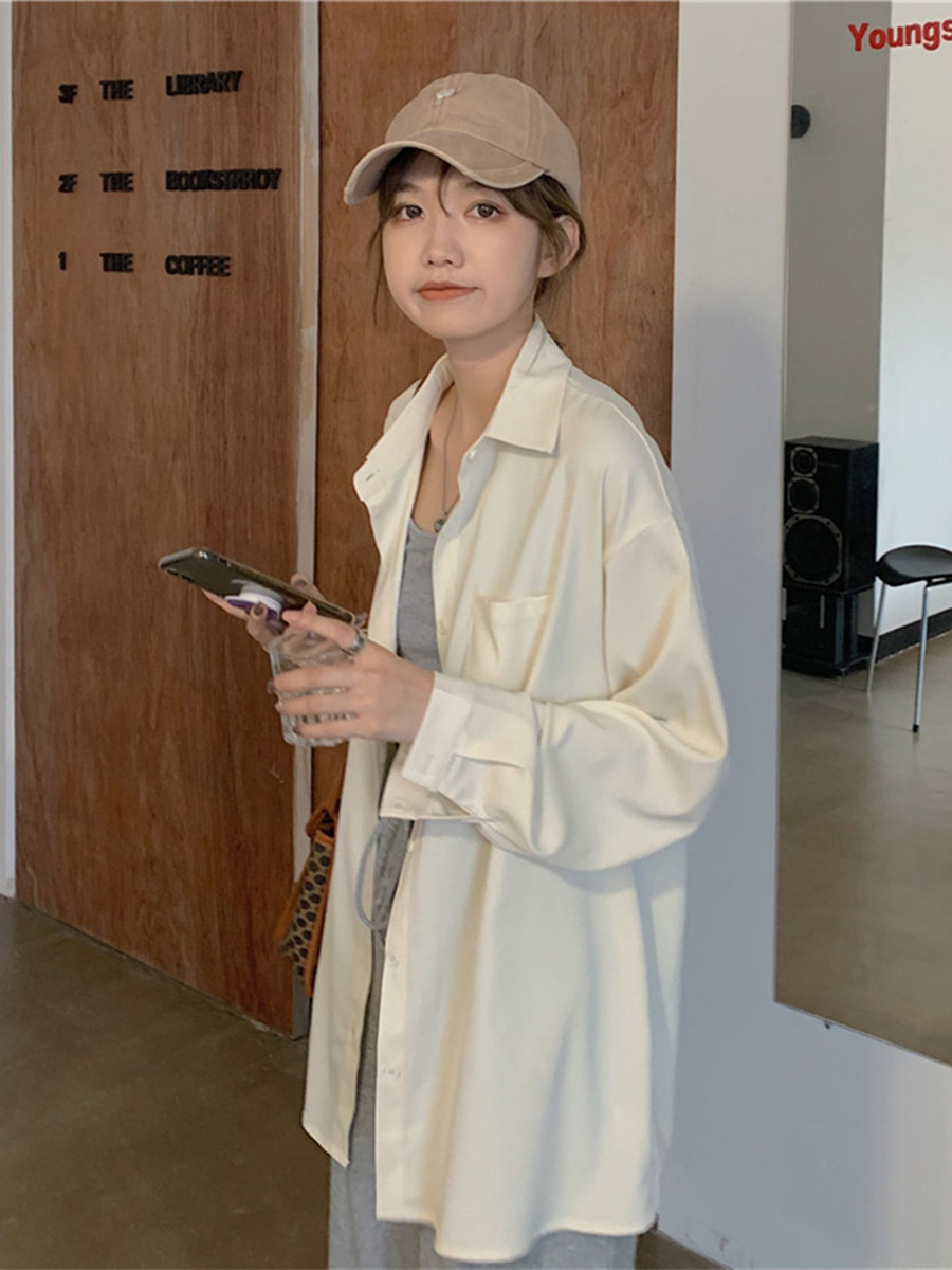 📚 复古衬衫宽松中长款外套女春秋薄款设计感韩版外搭开衫长袖上衣潮