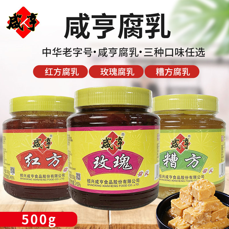 📚 咸亨正宗绍兴豆腐乳红方/糟方/玫瑰腐乳500g调味拌饭下饭菜霉豆腐