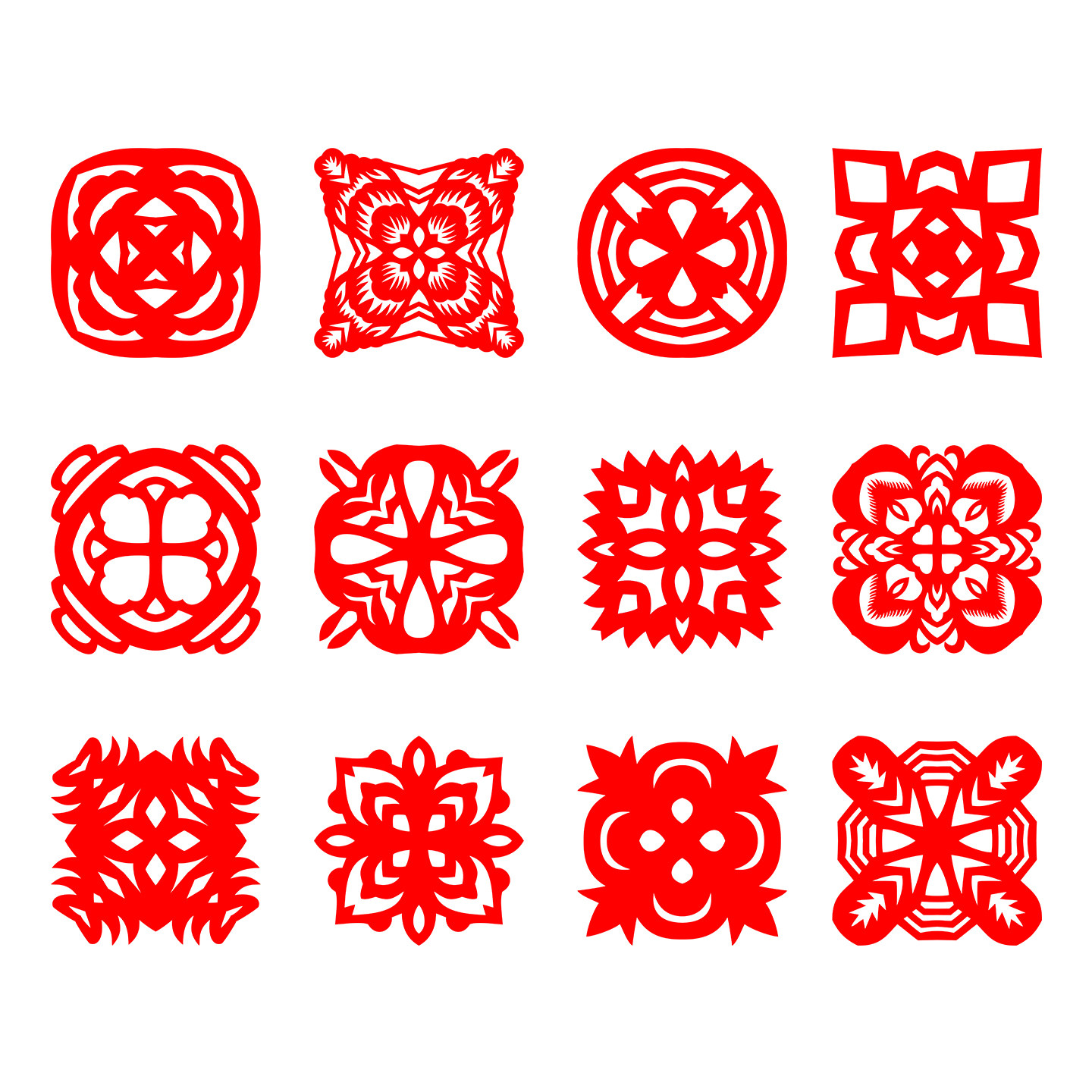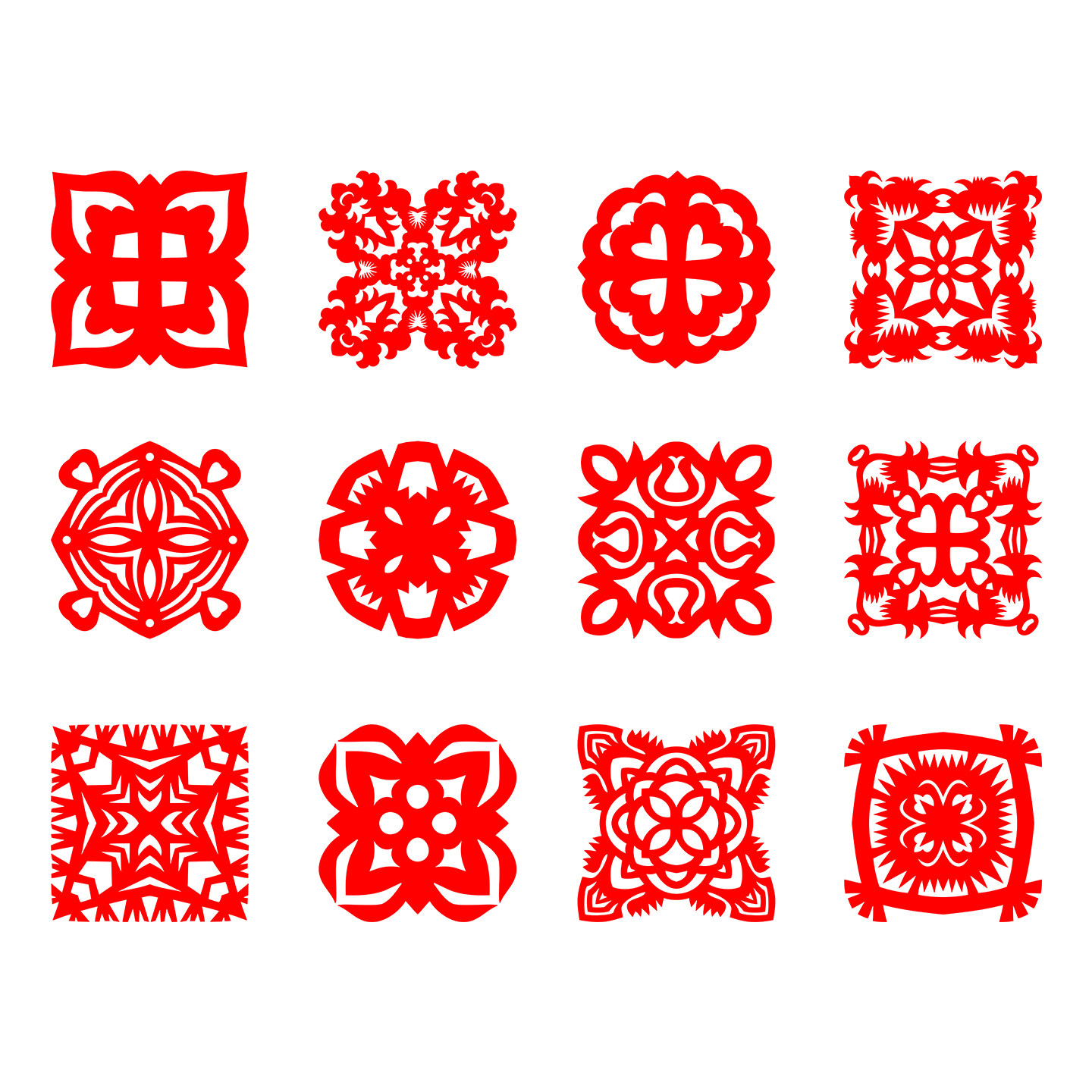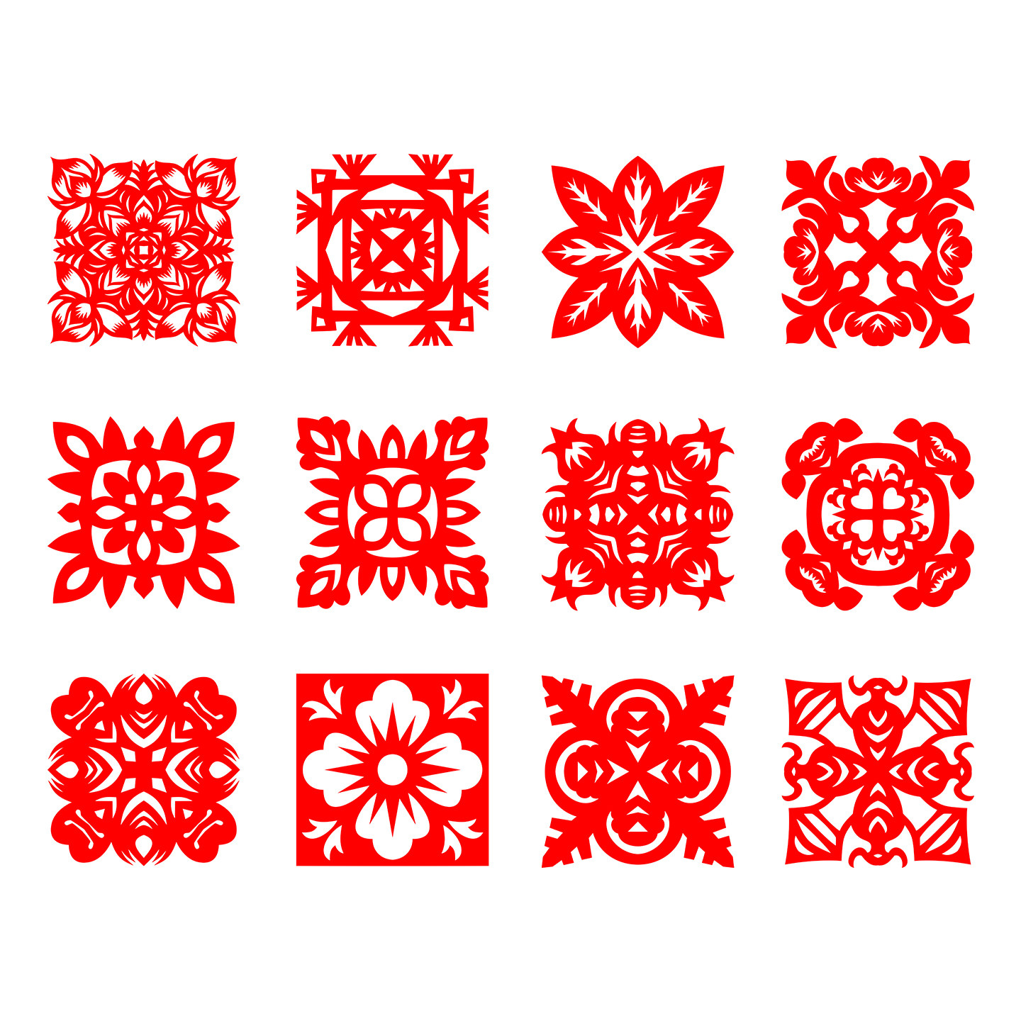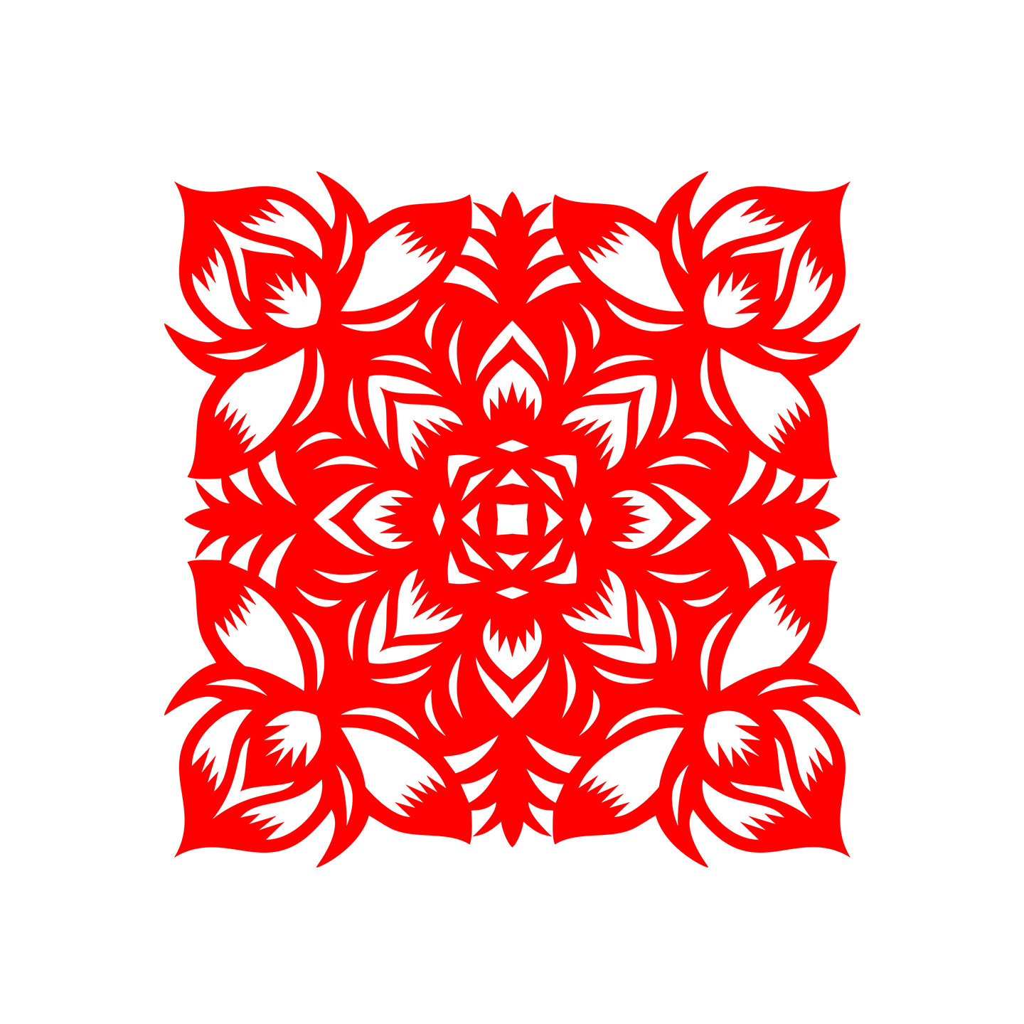 📚 轴对称窗花 3次对称折叠剪纸 成品 双面红 蓝宣纸 即时贴