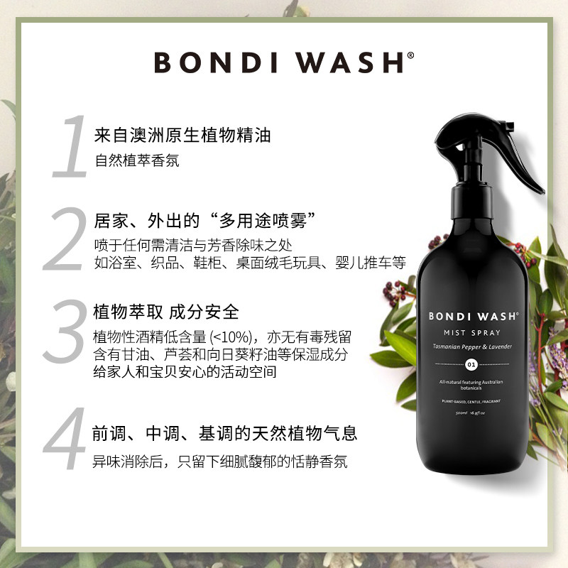 📚 植萃防护香氛喷雾BONDI WASH精油抗菌衣织物去异味户外免洗手进口