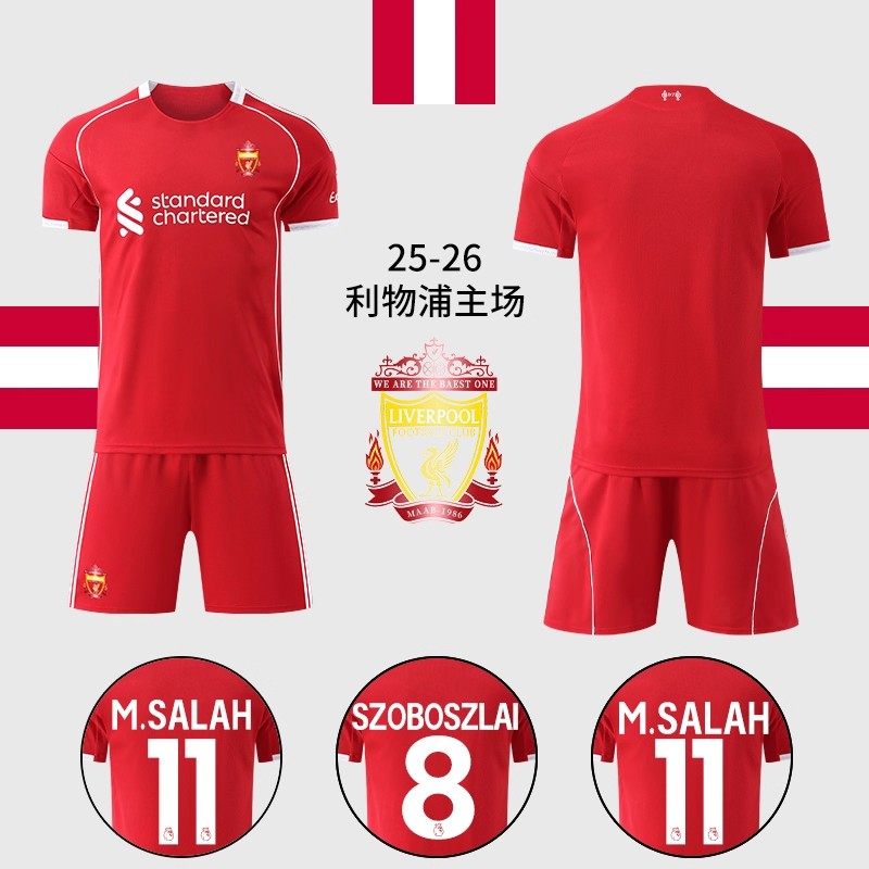 📚 2526利物浦索博斯洛伊萨拉赫主场球衣定制足球服套装男儿童训练服