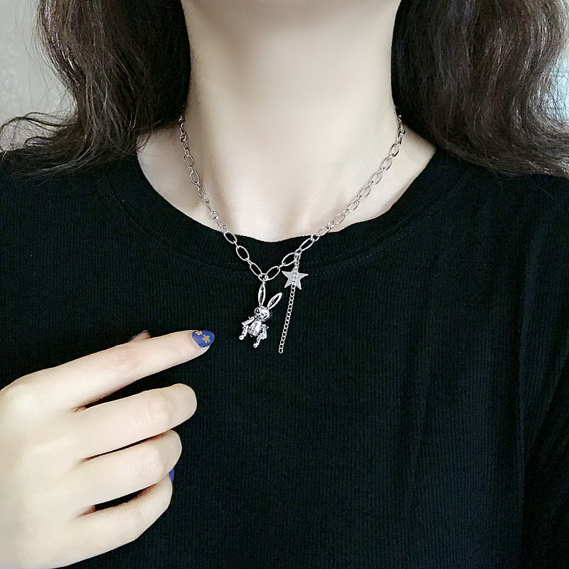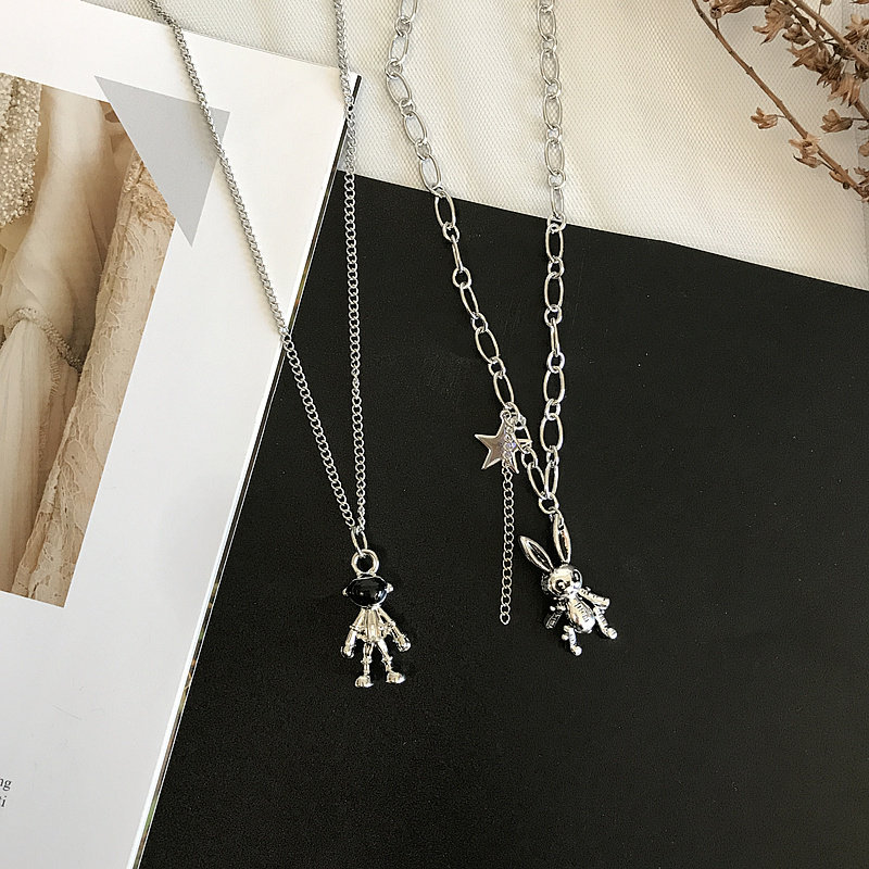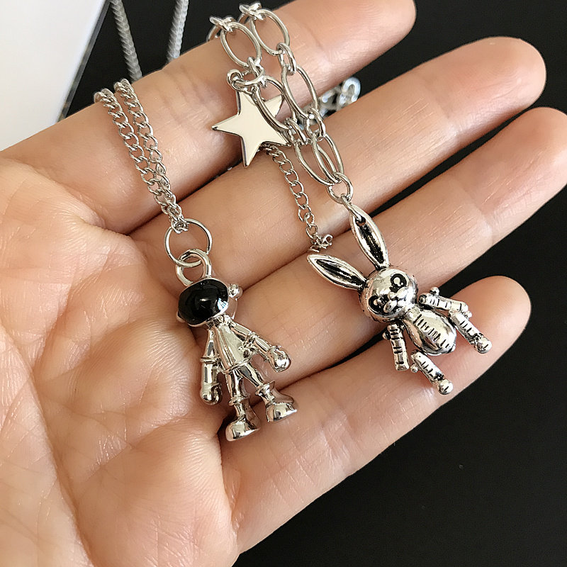 📚 宇航员项链男潮太空人卡通兔子骨链锁短女嘻哈情侣hiphop可爱网红