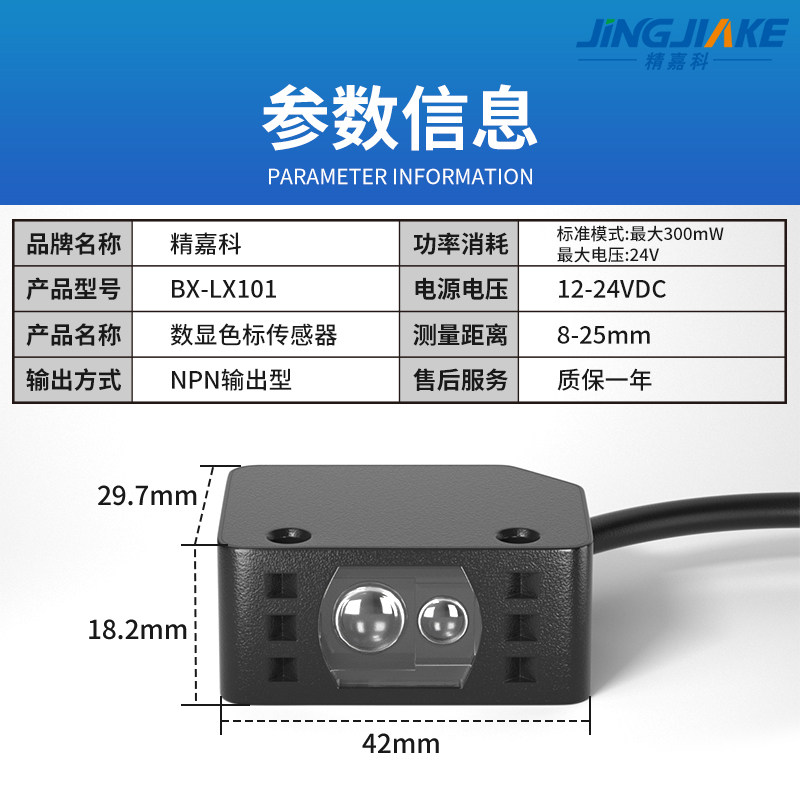 📚 精嘉科LX-101色标光电开关颜色传感器智能标签纠偏分色定位感应器