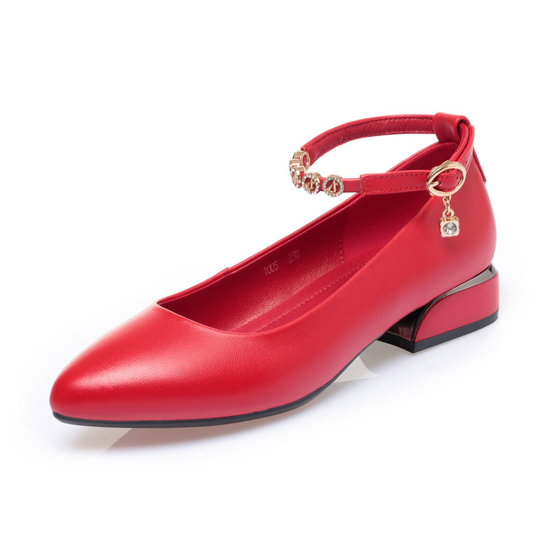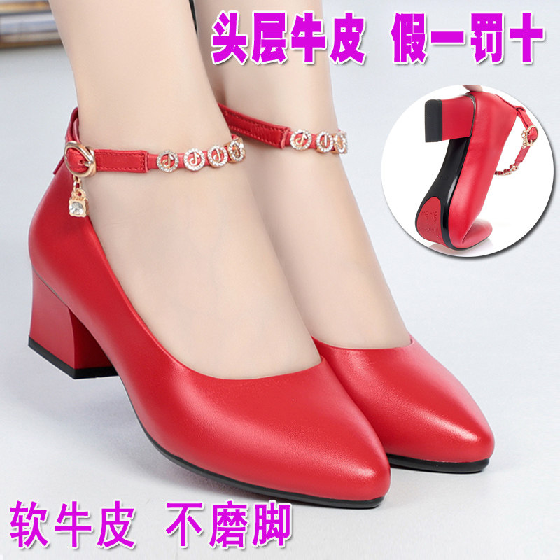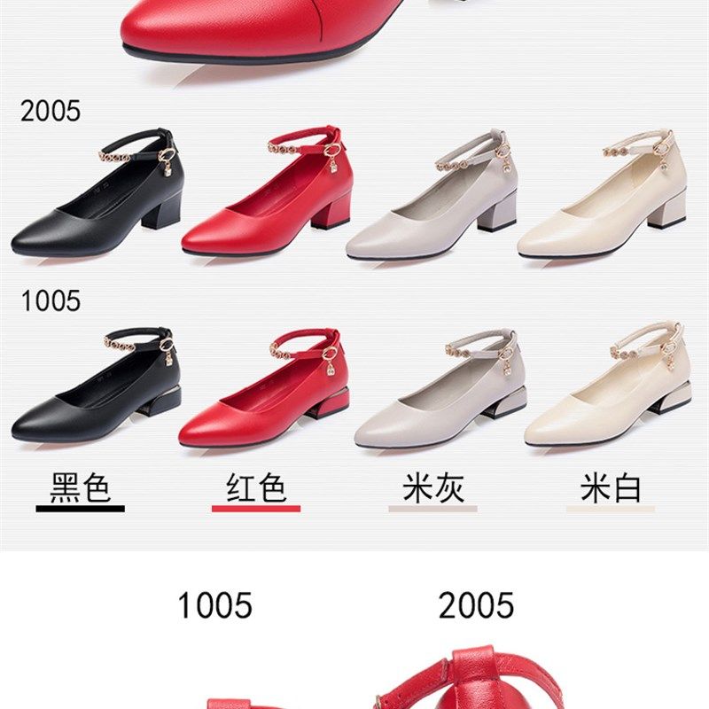 📚 跳舞的红皮鞋女鞋子真皮软底一字扣单鞋中粗跟高跟鞋中老年妈妈鞋