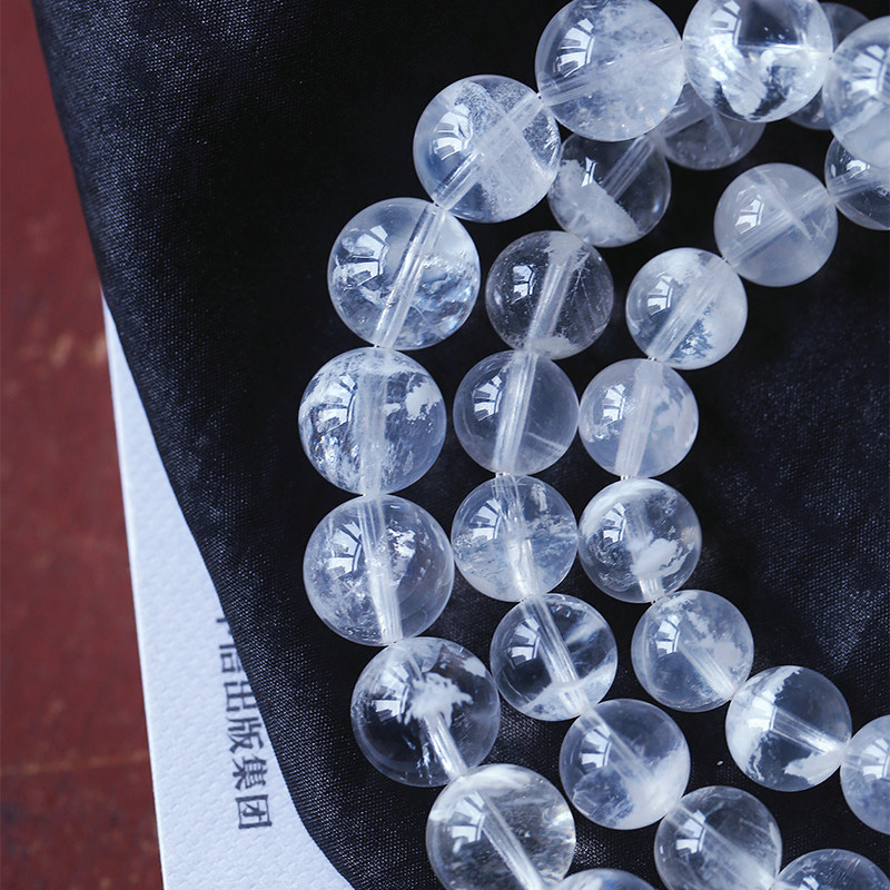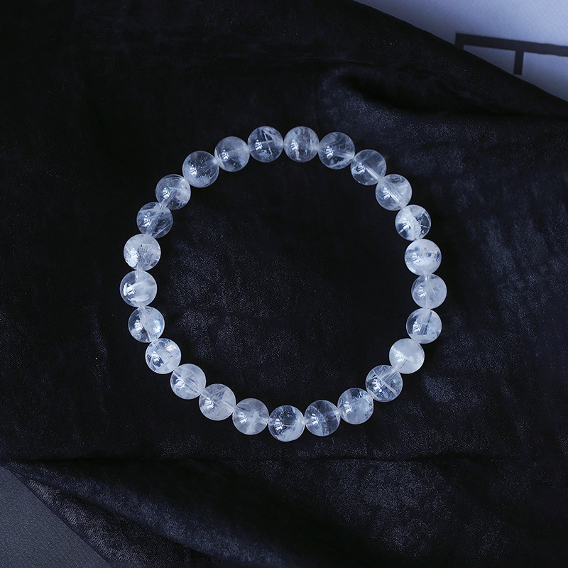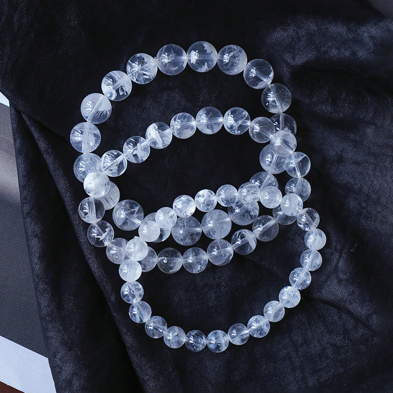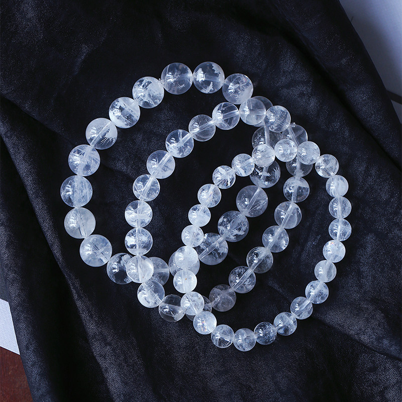 📚 天然水晶白幽灵圆珠单圈手链 男女款水晶白幽灵手串饰品礼物