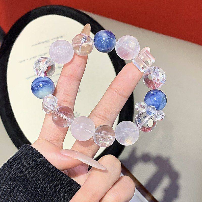 📚 天然水晶龙鳞蓝晶手饰链 时尚原创设计款白幽灵手串 天然水晶手串