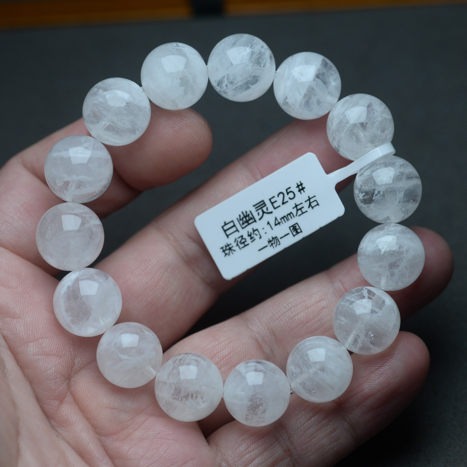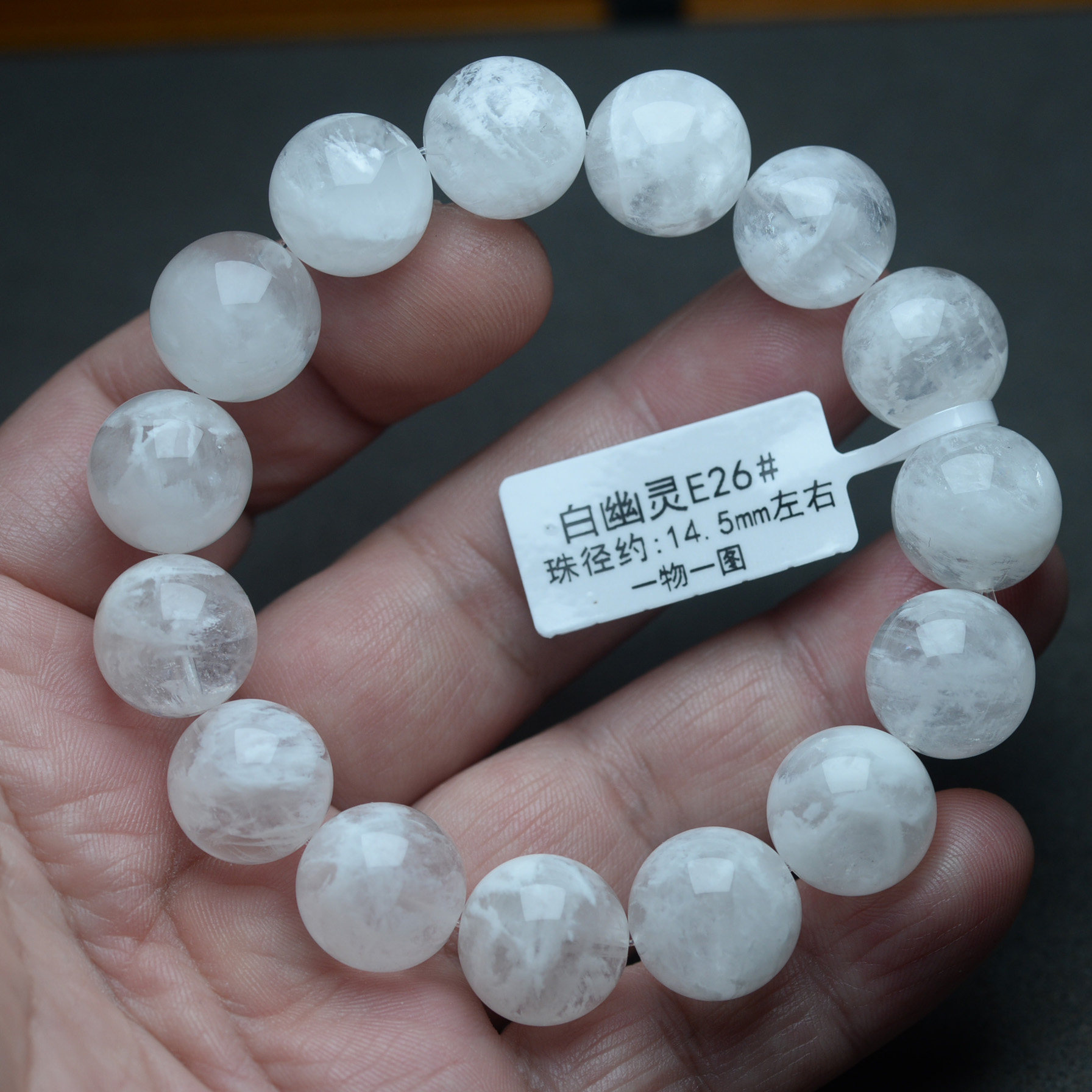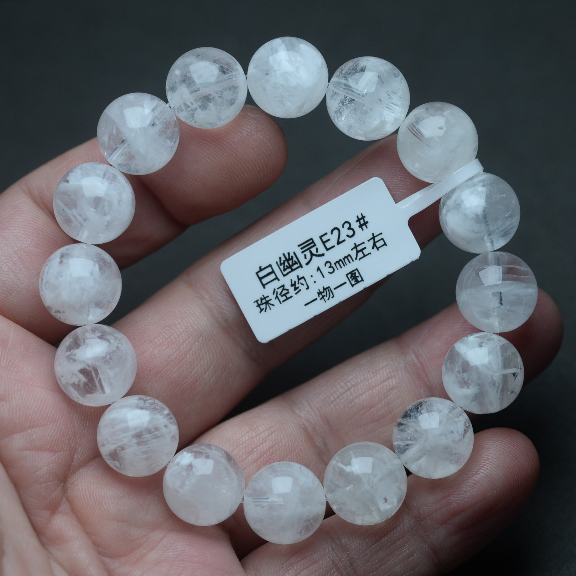 📚 天然雪花白幽灵手串女飘花白水晶手链千层聚宝盆礼物饰品一物一图