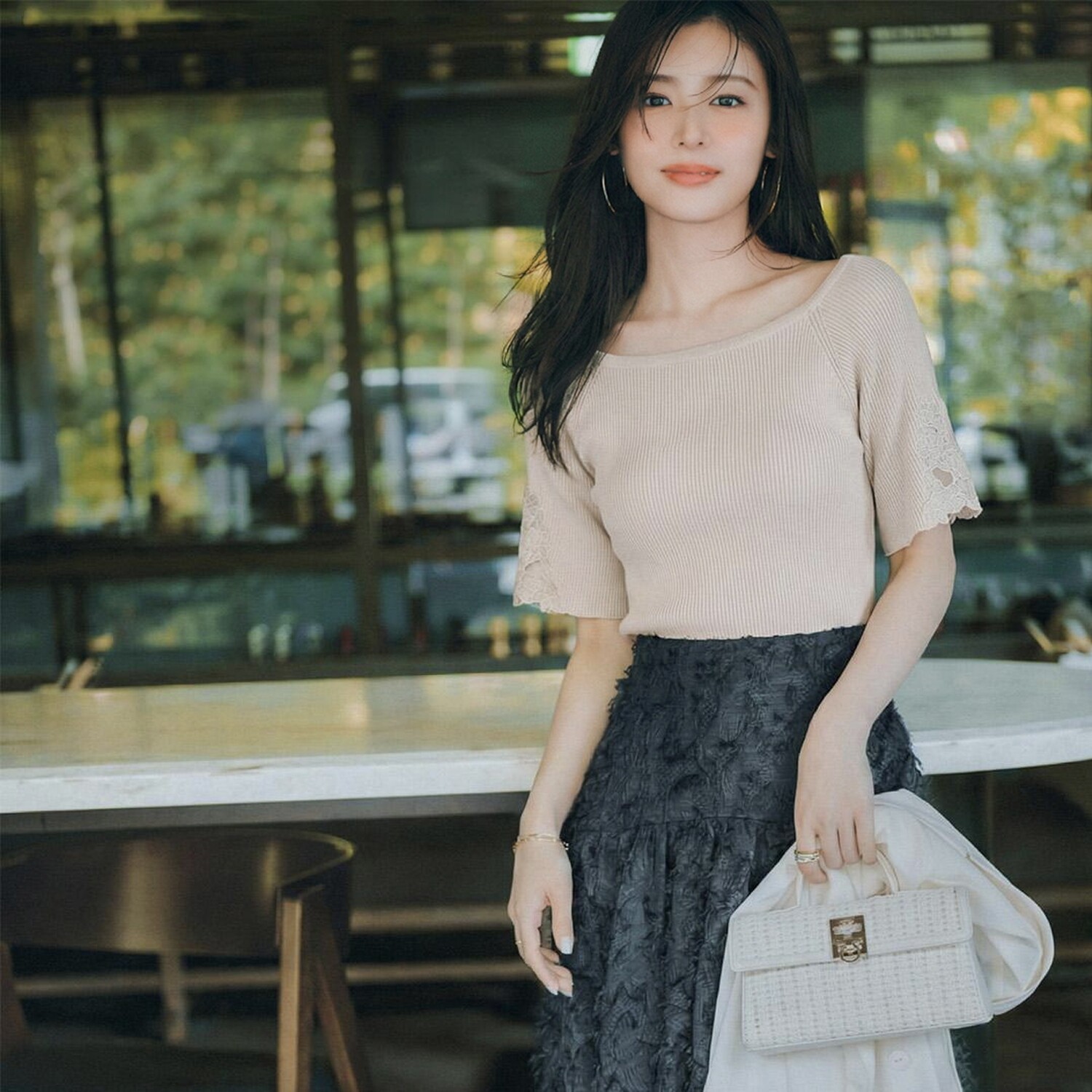 📚 仅10件~PBD家超人气 柔软舒适优雅船领花柄刺绣喇叭袖针织衫
