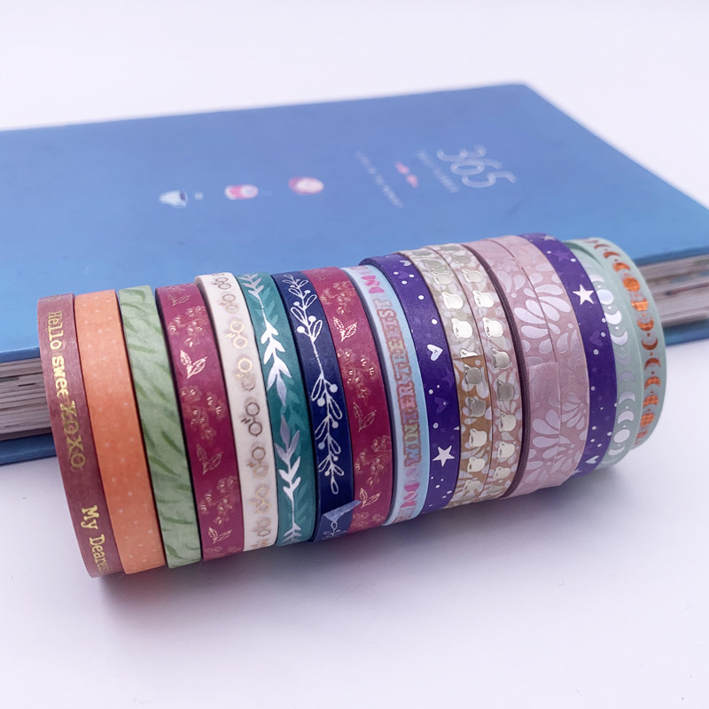 📚 极细和纸手帐胶带分割条出血线烫银 拉花日常简约实用彩色整卷diy