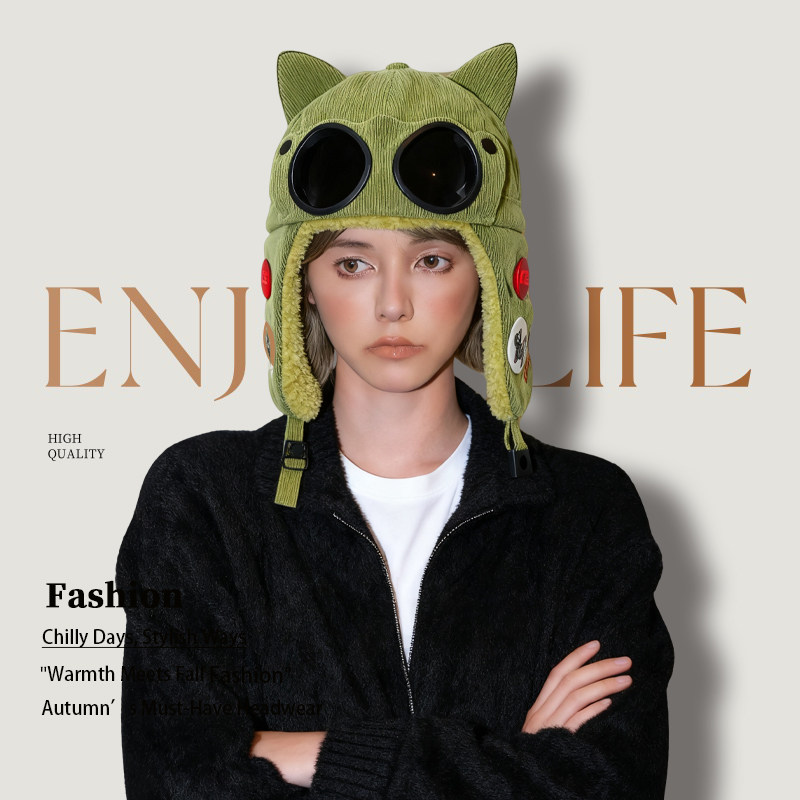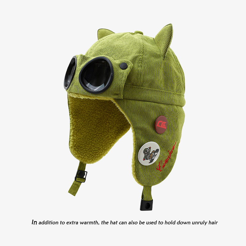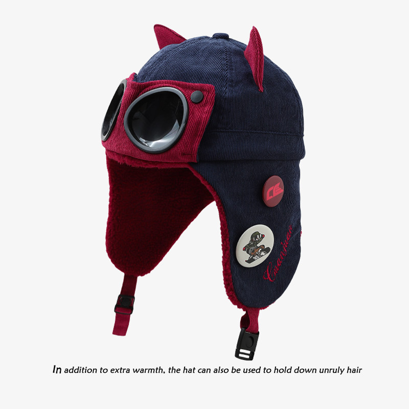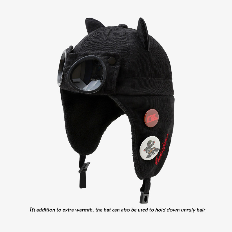 📚 可爱猫耳朵儿童帽子男孩秋冬季2025新款墨镜飞行员护耳亲子雷锋帽