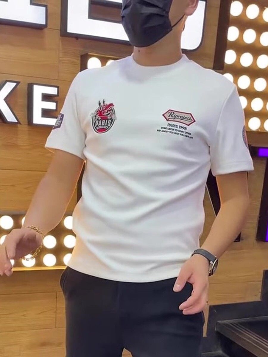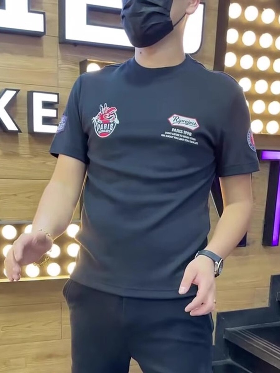 📚 网红潮牌夏季爆款短袖男2025新款男装纯棉T恤修身圆领印花体恤衫