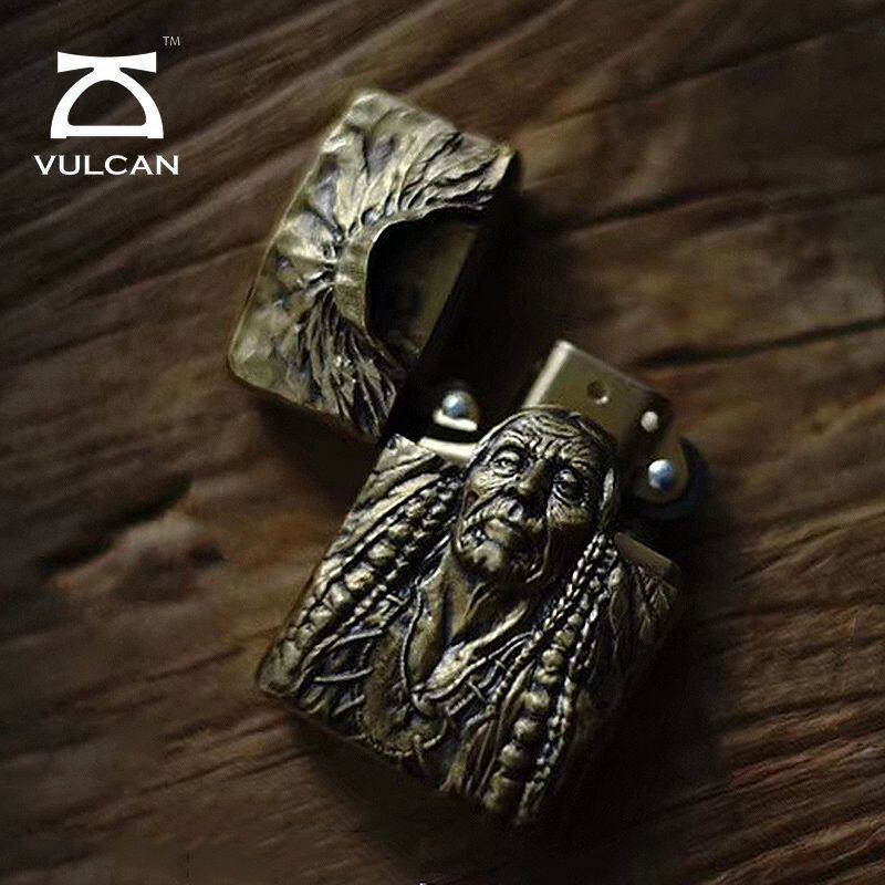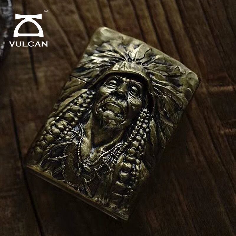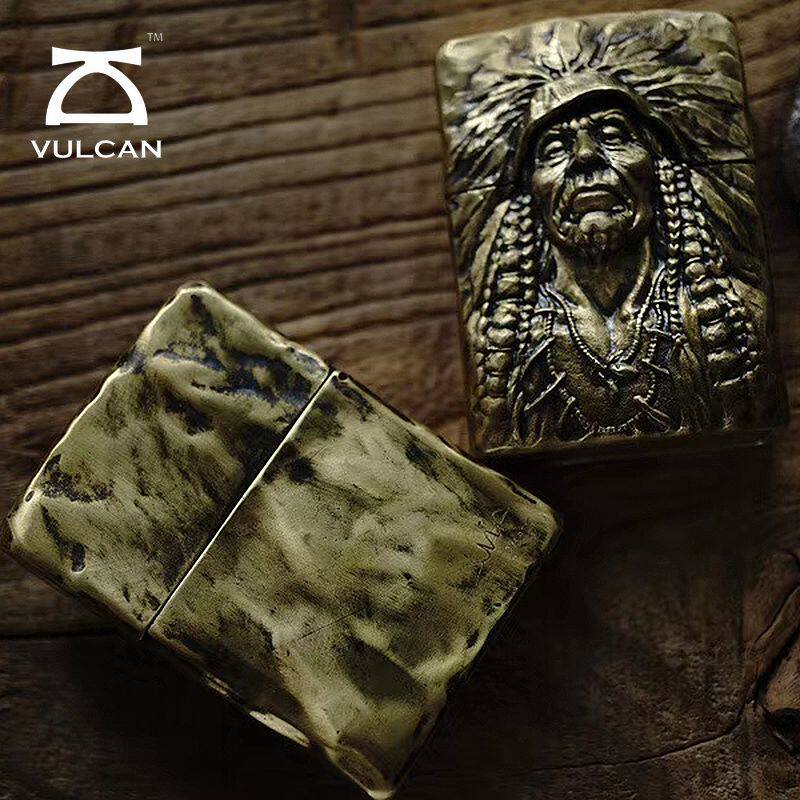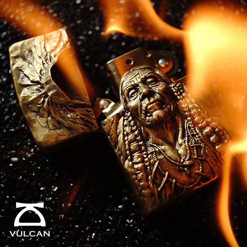 📚 VULCAN伏尔甘印第安酋长无畏防水风打火机手工雕刻925银黄铜礼物