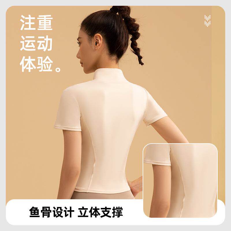 📚 jacket sports sleeve short fitness yoga collar stand zip