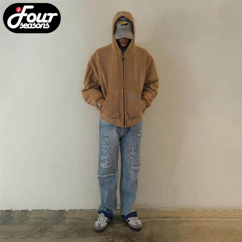 📚 False perception连帽夹克Over Aged J130褪色水洗做旧复古外套