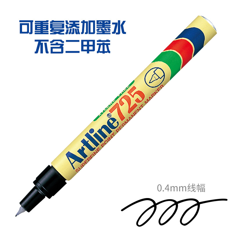 📚 Artline 日本雅丽EK-725 0.4mm极细油性记号笔工业用勾线笔标记笔 环保速干防水性强 特制树脂笔尖