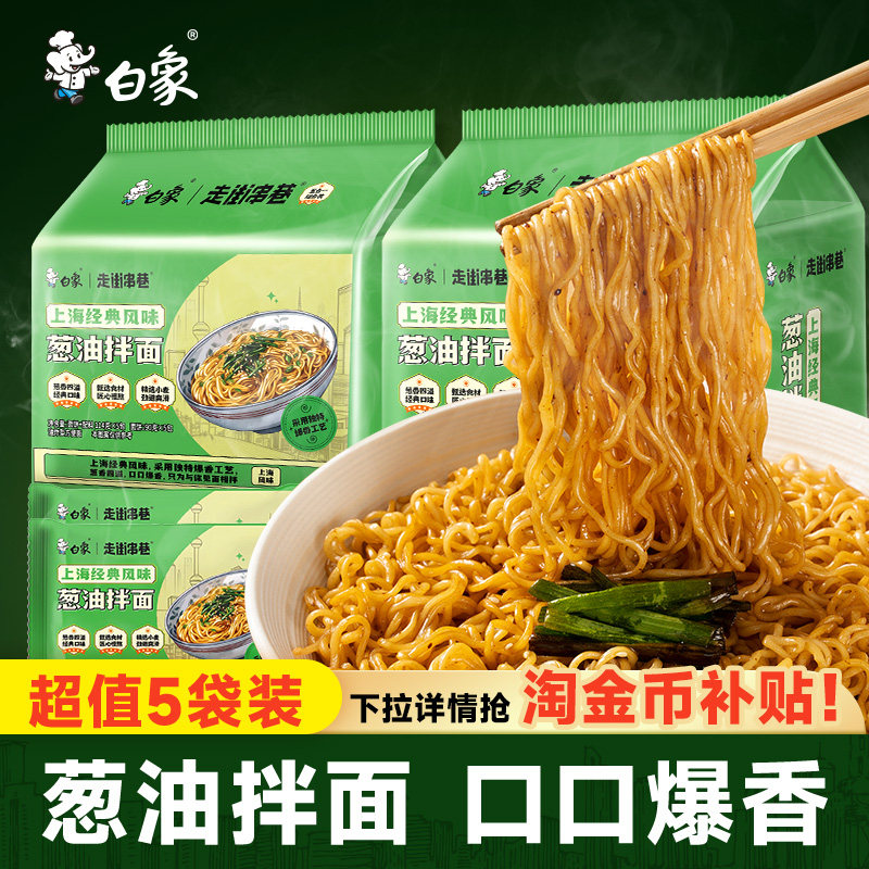 📚 白象上海葱油拌面不辣方便面火鸡面速食食品泡面袋装主食夜宵整箱