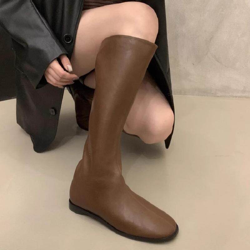 📚 法式棕色美拉德瘦瘦长筒靴女鞋2024年新款秋季韩版长靴中筒骑士靴