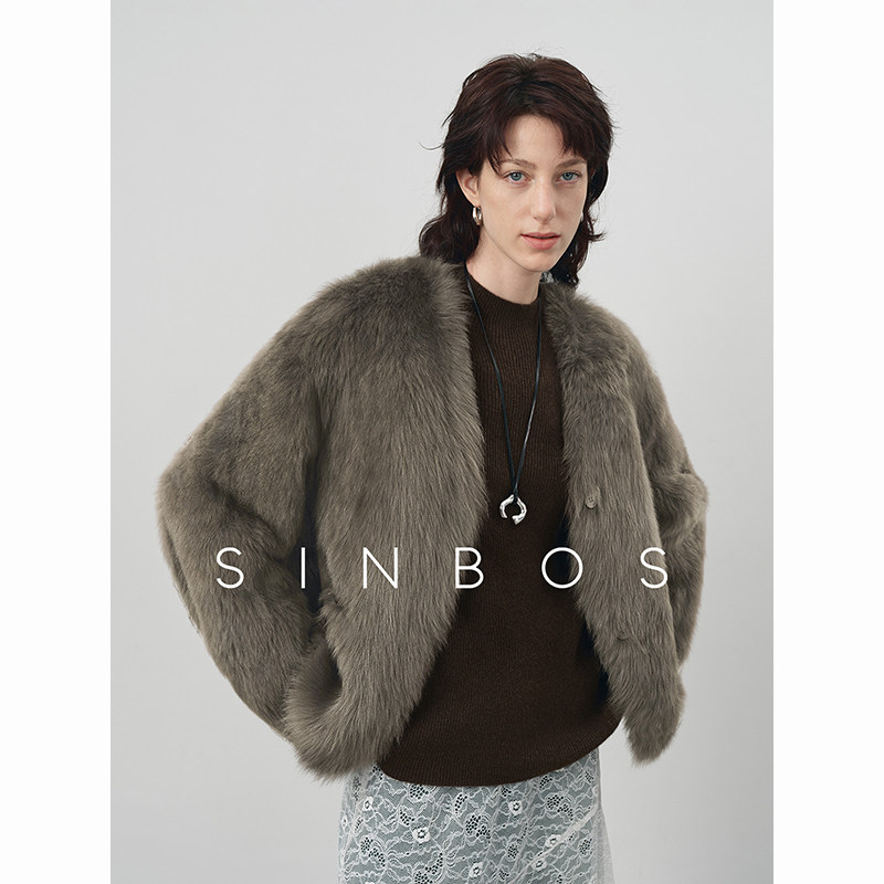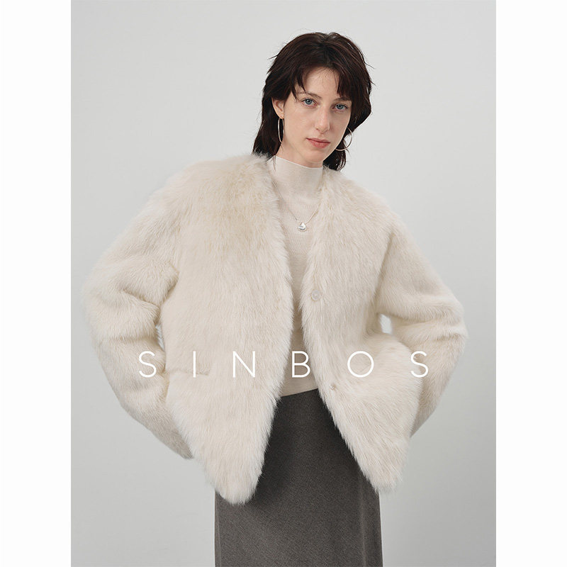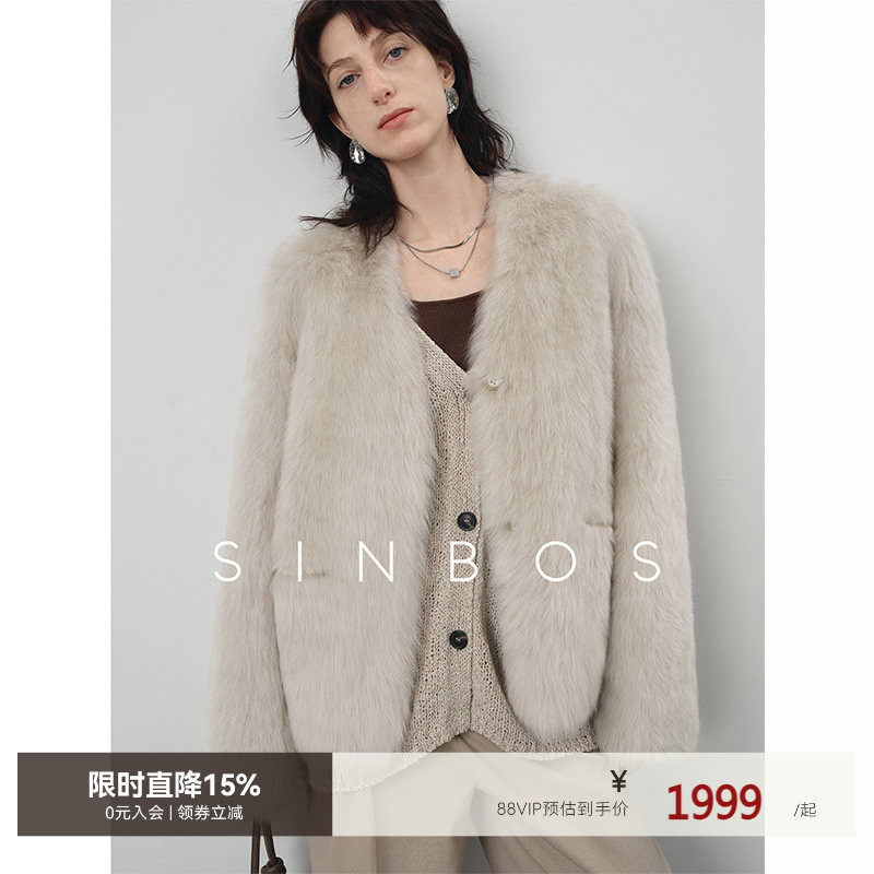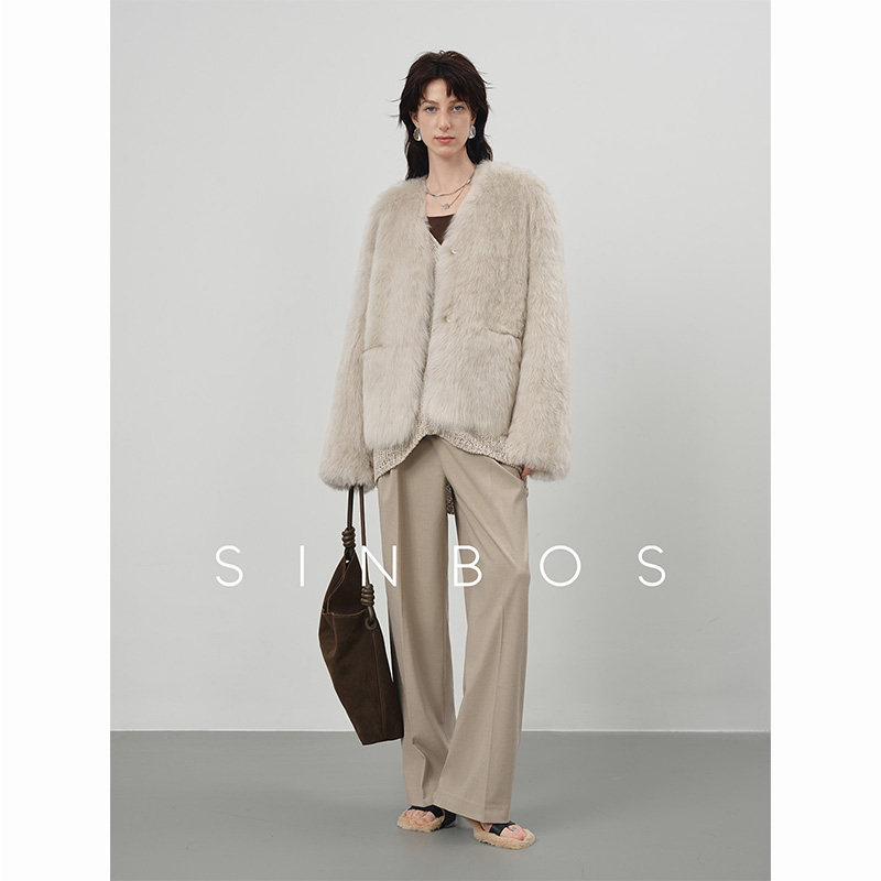 📚 SINBOS香雾 进口托斯卡纳皮毛一体女V领2024冬新款羊羔毛皮草外套