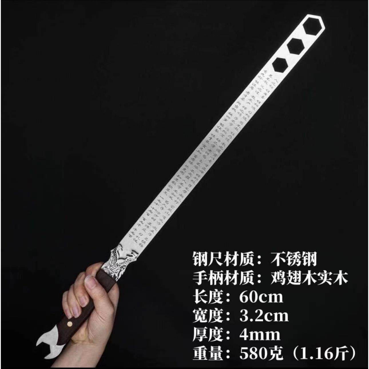 📚 龙泉锻打戒尺淬火钢尺高性能不锈钢硬度高棍多功能车载防身测量尺