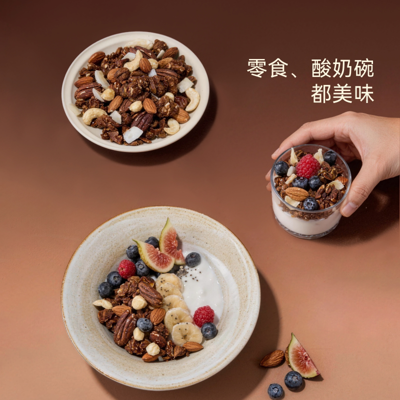 📚 ohmyfood格兰诺拉榛果黑巧克力可可烘焙燕麦片坚果酸奶碗代餐即食