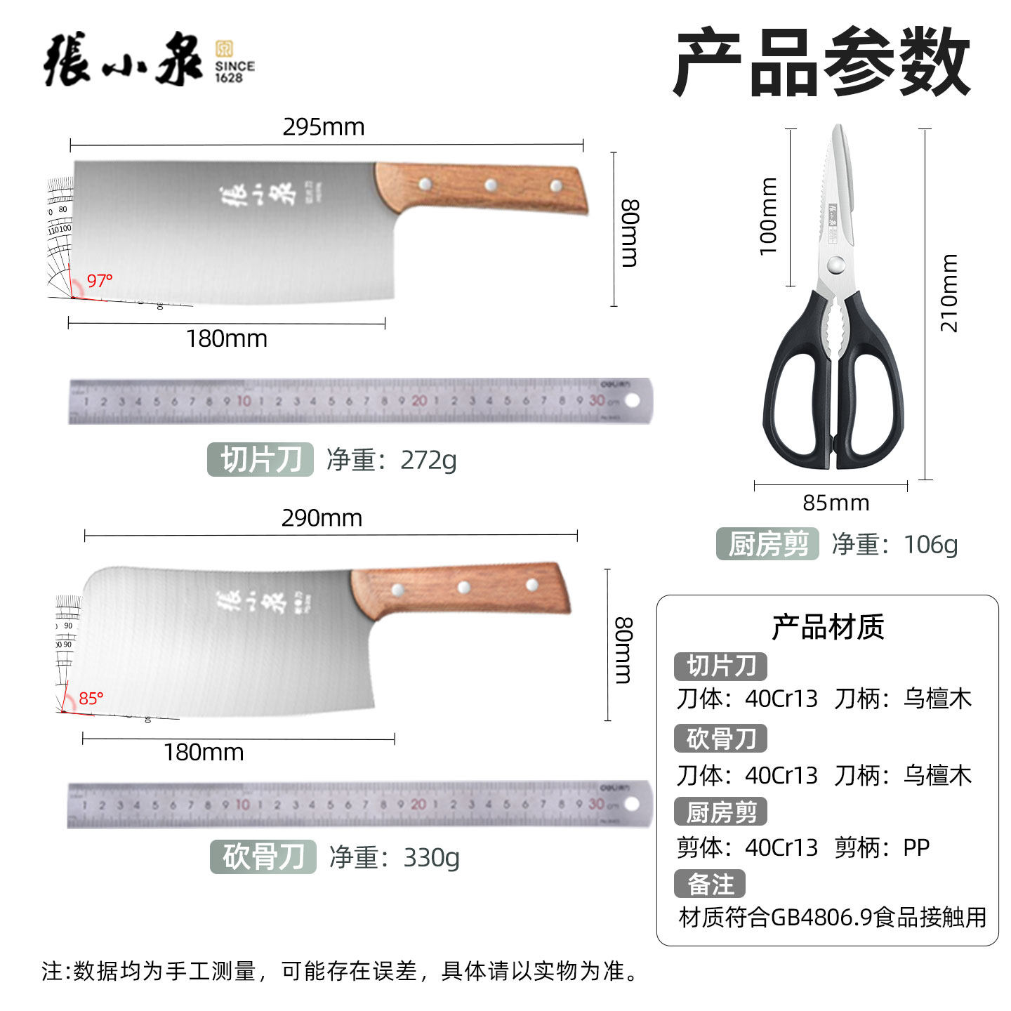 📚 张小泉刀具套装菜刀套装刀具厨房套装组合家用切菜斩骨刀厨房剪刀