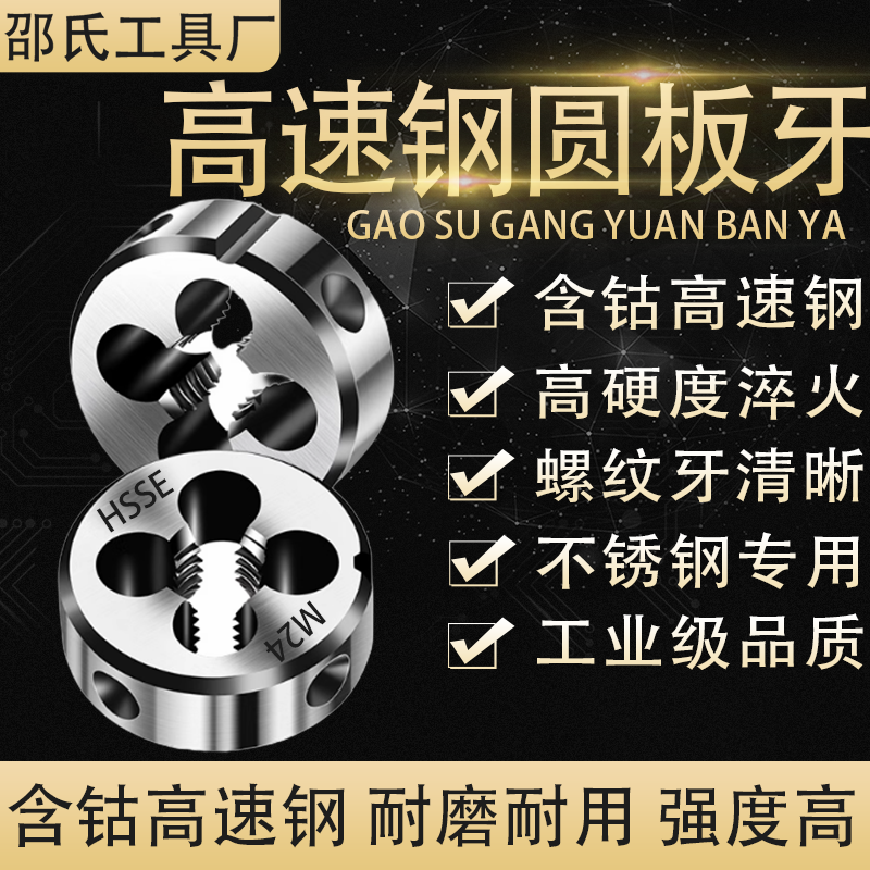 📚 加硬超硬HSS高速钢不锈钢用含钴外螺纹套丝牙板耐用圆板牙3456810