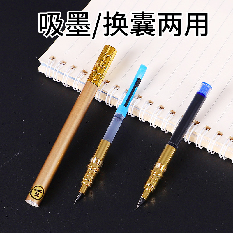 📚 金属杆如意金箍棒钢笔吸墨换墨囊两用暗尖0.38mm学生用帅气霸气