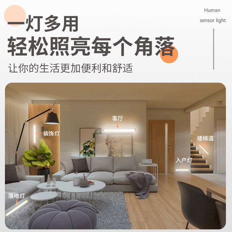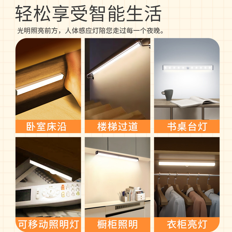 📚 智能LED人体感应灯 橱柜衣柜灯带 卧室走廊酒柜感应灯 USB吸顶灯