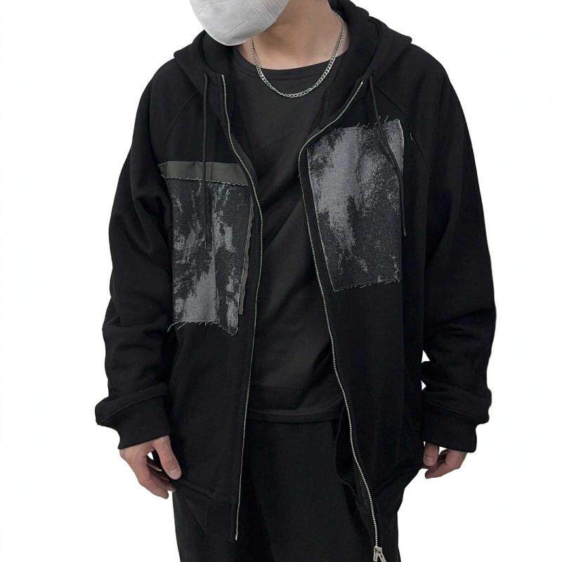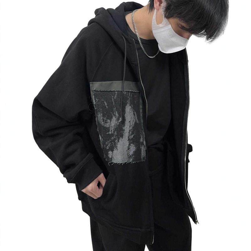 📚 WithoutMe/FLEE BASEMENT 秋冬重磅纯棉贴布宽松拉链连帽卫衣外套