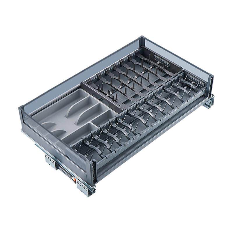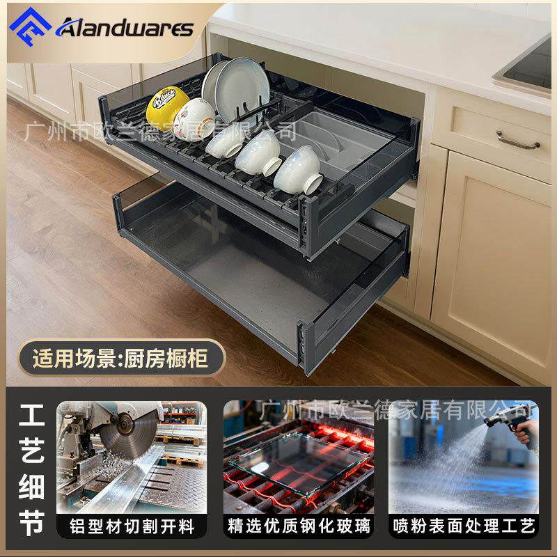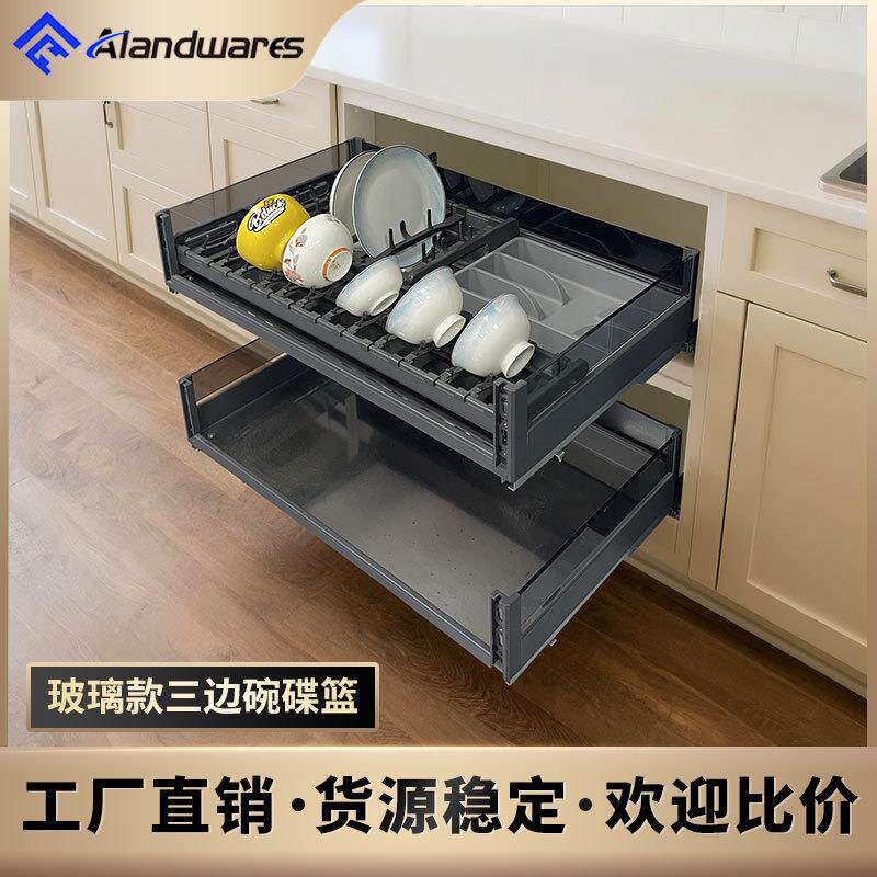 📚 三边拉篮厨房橱柜玻璃抽屉式双层碗碟拉篮锅具收纳滑轨带阻尼