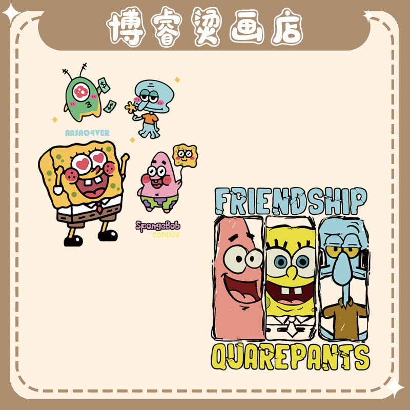 📚 白墨烫画贴 2025新款海绵宝宝衣服印花辅料T恤卫衣新款图案热转印