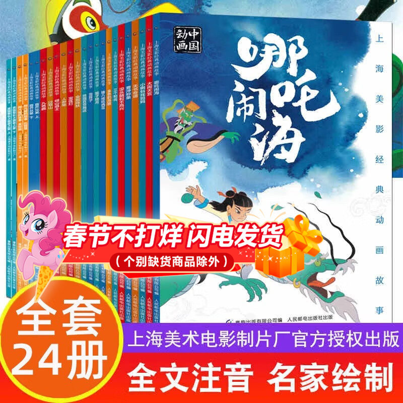 📚 上海美影经典动画故事全套24册彩图注音版 大闹天宫连环画阿凡提的故事葫芦兄弟黑猫警长哪吒闹海漫画曹冲称象宝莲灯小蝌蚪找妈妈