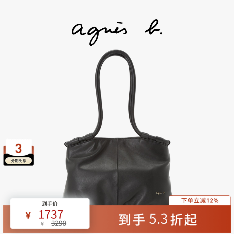 📚 agnès b.皮革中号女士通勤手提包单肩包女托特包