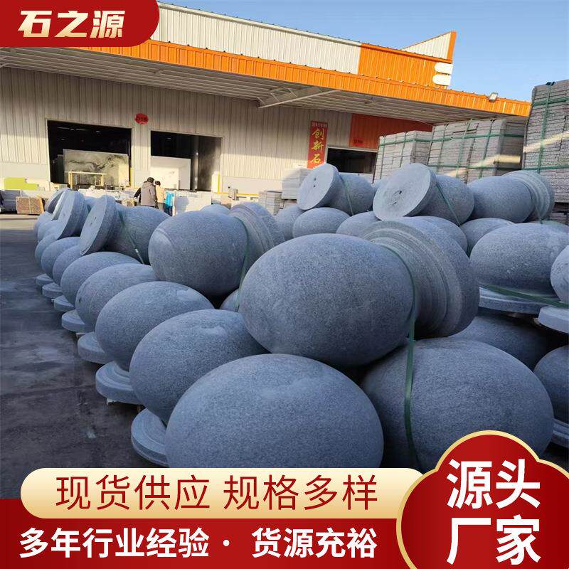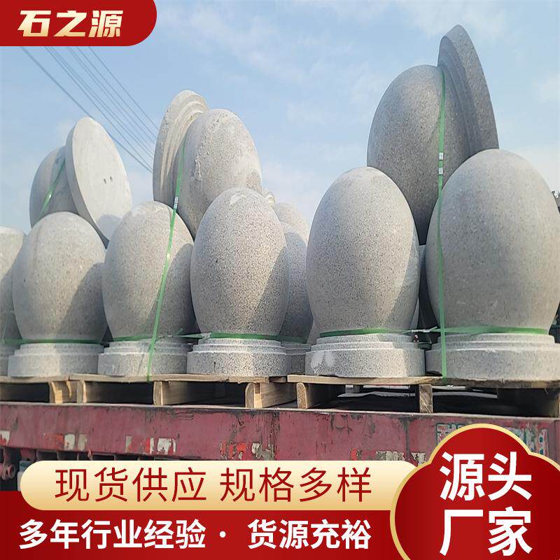 📚 广场拦路石材大理石路障圆球供应花岗岩芝麻白止车石球车挡石头墩