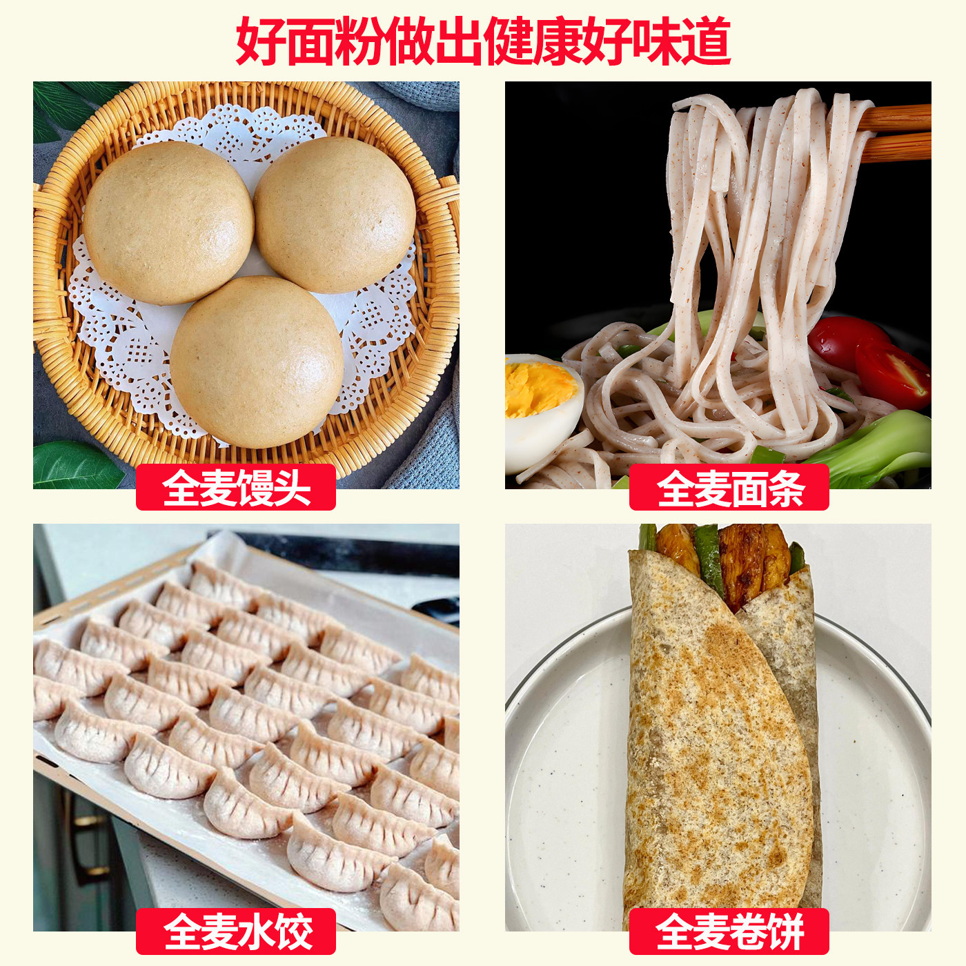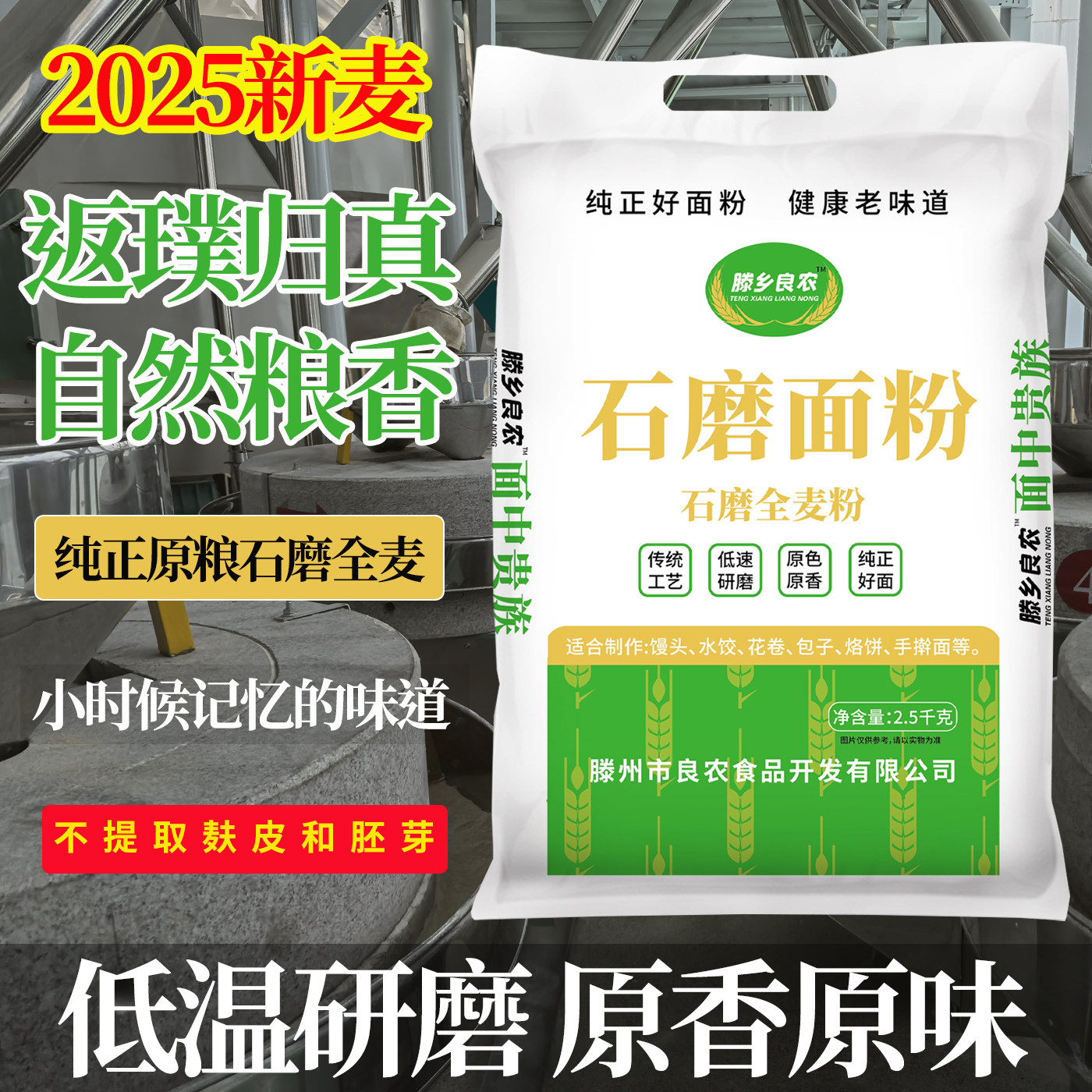 📚 山东农家石磨全麦面粉无添加带麸皮5斤自磨中筋馒头面粉新国标
