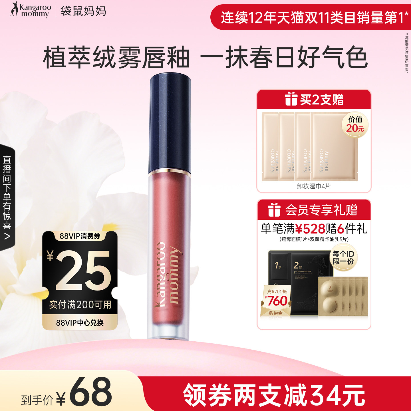 87¥ CZ028 6LuxUKFU3Ya¥ https://m.tb.cn/h.7AGkCrA 袋鼠妈妈准孕妇唇釉可用化妆品口红不易掉色保湿滋润唇膏专用彩妆 --------------------- 【原售价】88.7元 【优惠券】10元 【券后价】78.7元。