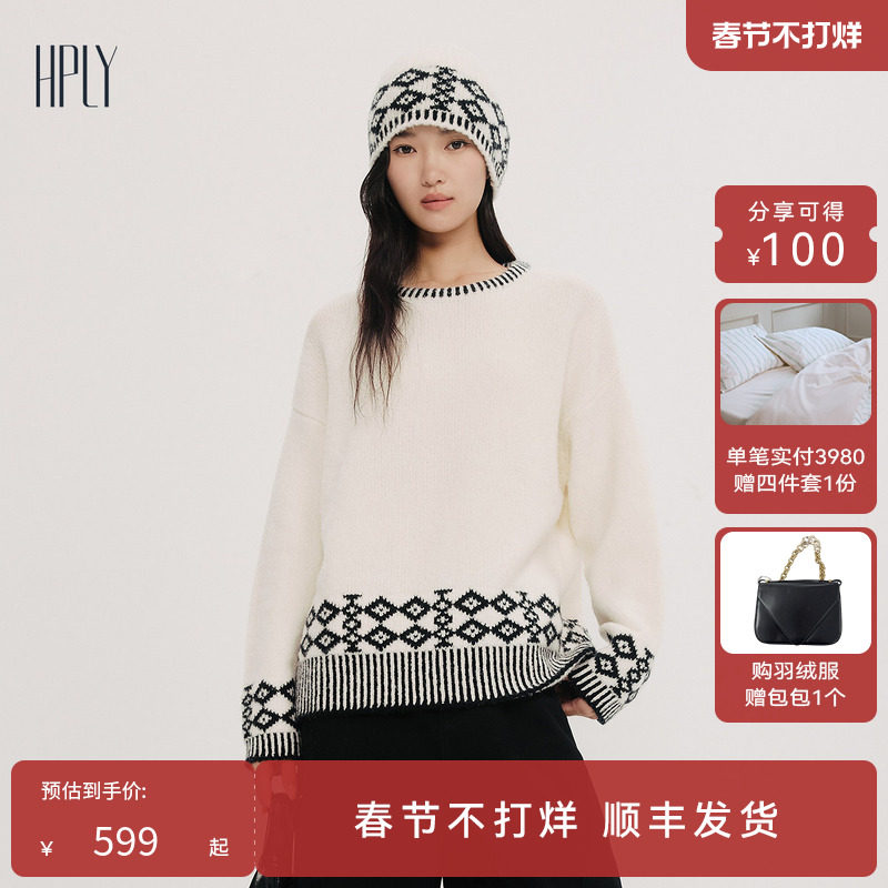 📚 【商场同款】HPLY荷比俪2025冬女绵羊毛费尔岛宽松提花针织毛衣