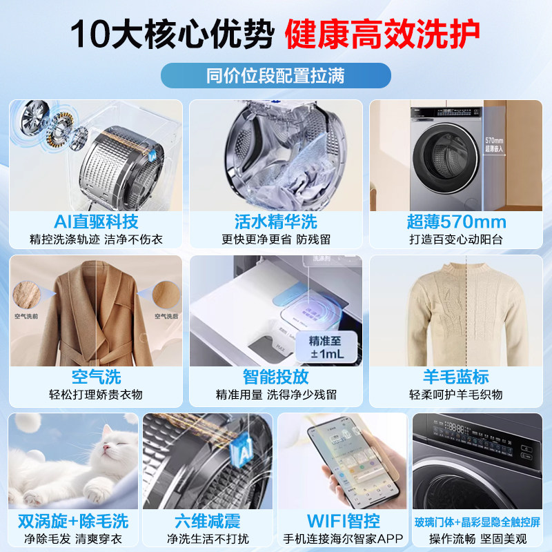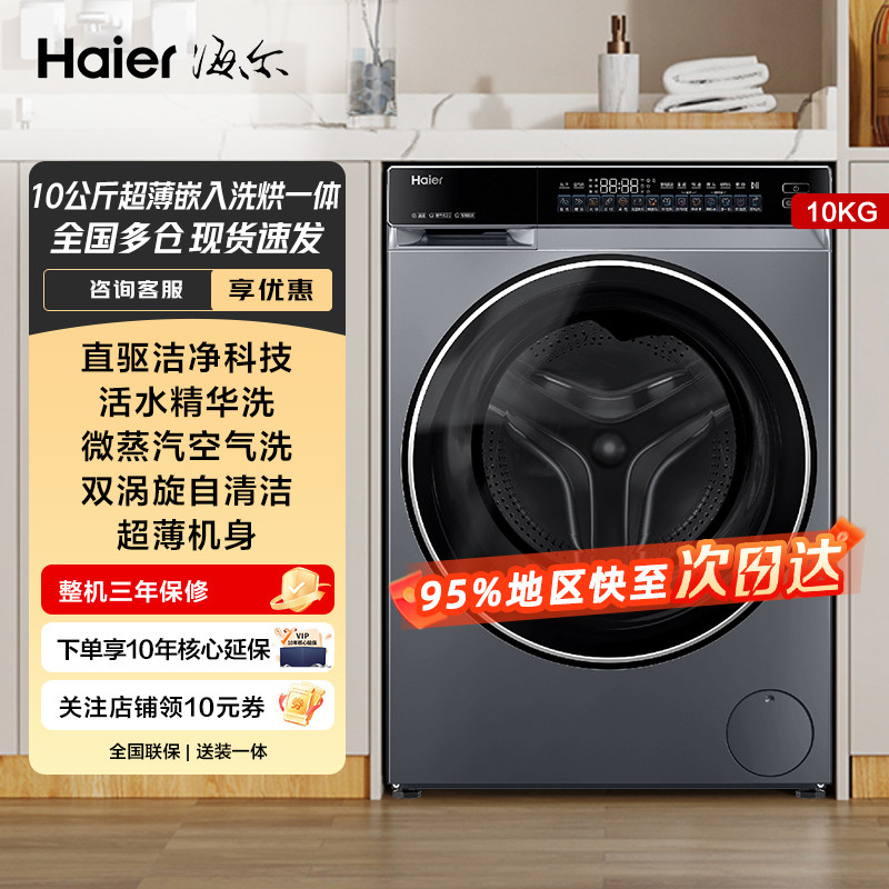 📚 海尔洗衣机582云溪3.0滚筒10kg洗烘一体家用直驱变频全自动精华洗