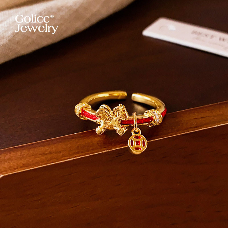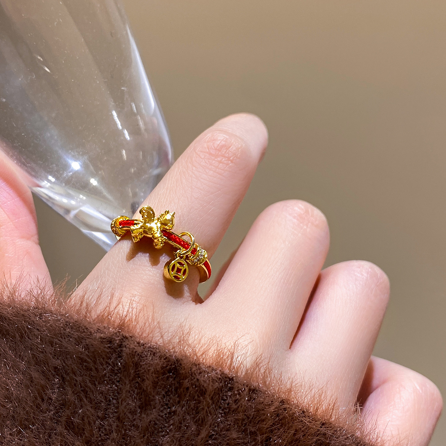📚 马年本命年沙金钱币戒指女2026新款开口戒轻奢食指戒小众精致指环