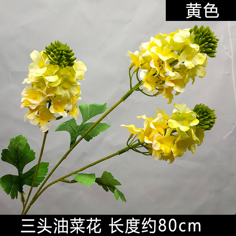 📚 厂家批发三头油菜花仿真花新款假花婚庆花艺花材花田装饰背景桌花