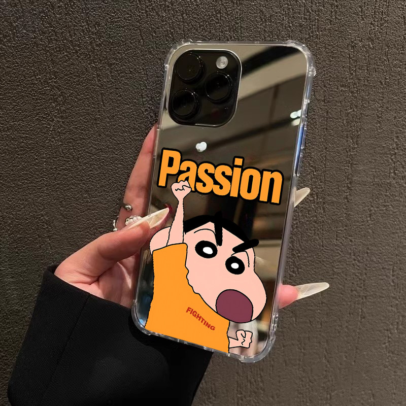 📚 激情passion蜡笔小新 适用iPhone16promax手机壳华为p70红米k80卡通vivox90镜面opporeno7se小米15创意mate60
